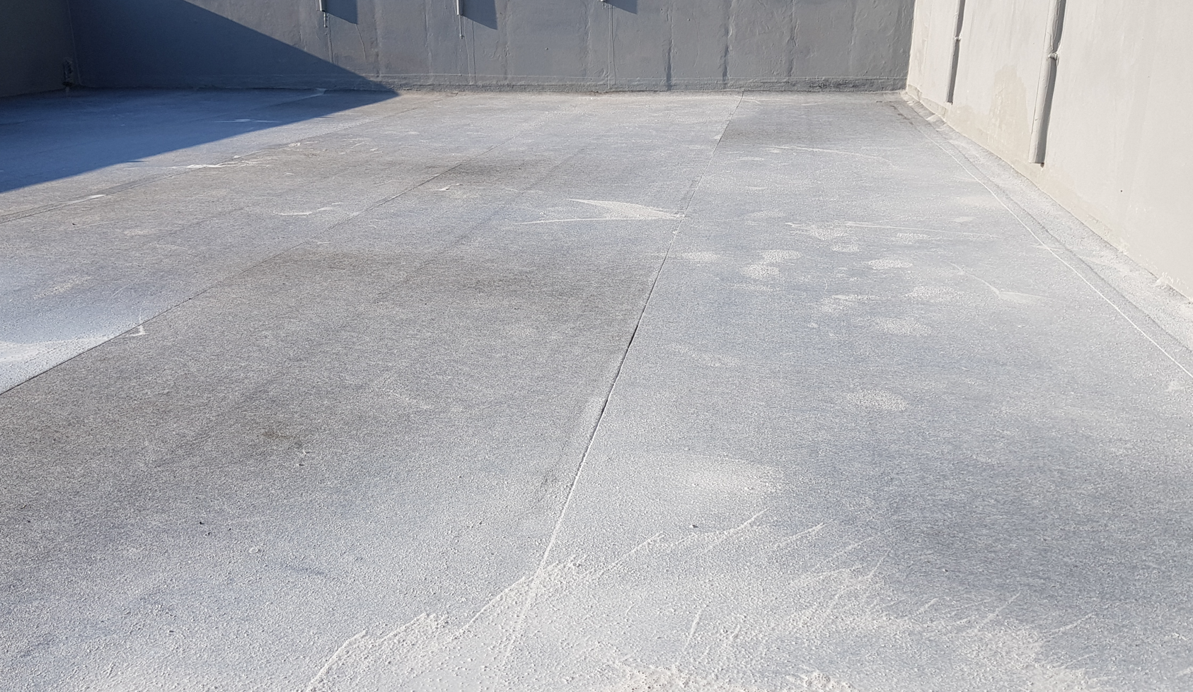 밑작업을 마친 후에는 프라이머 작업을 진행합니다. 프라이머는 침투 방수액을 바닥에 도포하여 스며들게 만드는 작업입니다. 바닥에 스며든 침투 방수액은 옥상에 1차적인 방수 효과를 주는 역할을 합니다. 바닥에 단차가 있는 경우에는 이후의 시트 작업이 어려울 수 있기 때문에 평평하게 만들어줘야 합니다. 이때 필요한 작업이 미장 작업입니다. 미장 작업은 몰탈과 침투 방수액을 혼합하여 작업합니다.