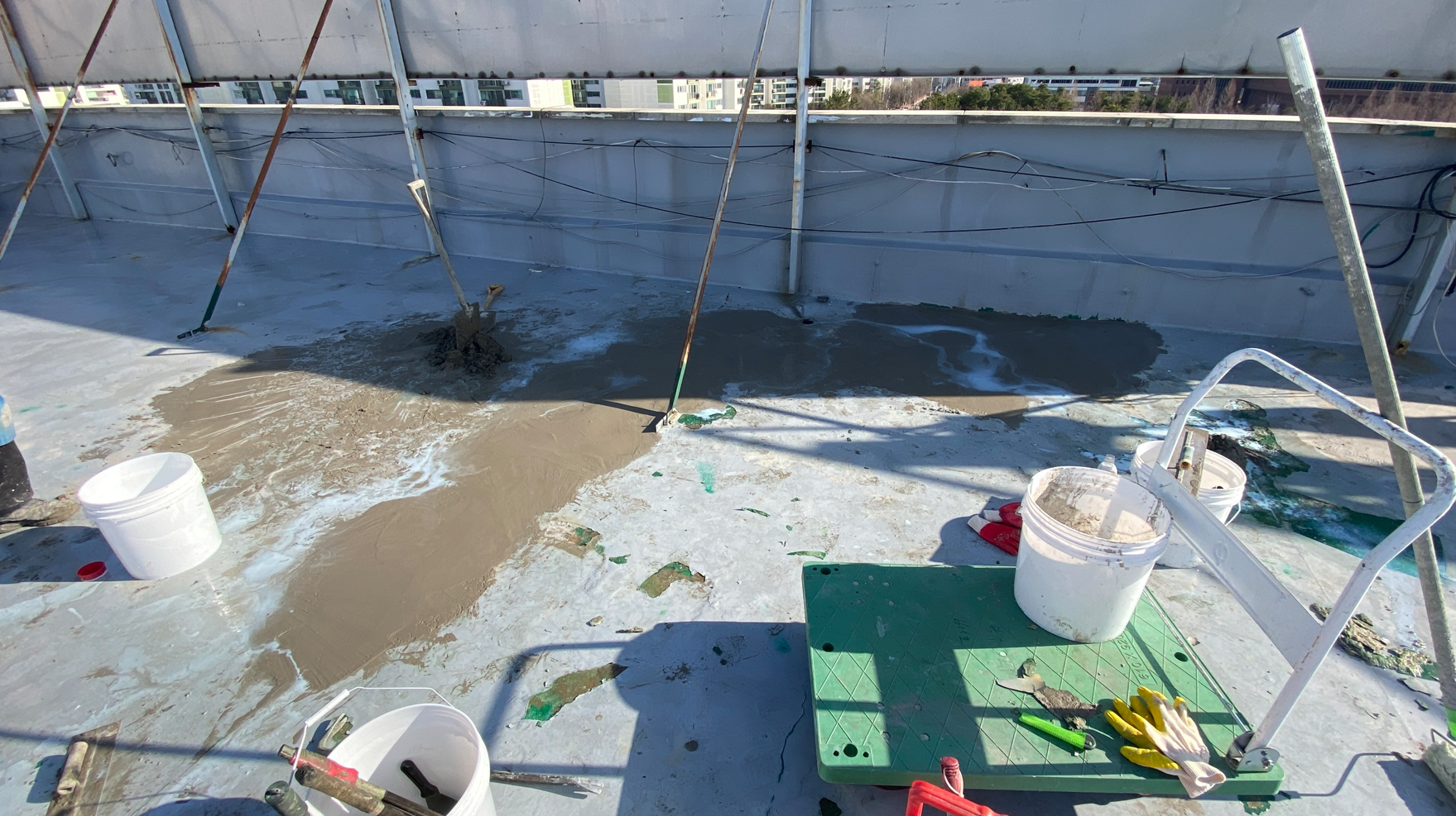 미장 작업에도 역시 침투 방수제가 쓰입니다. 미장 작업은 옥상에 생긴 단차를 없애기 위한 작업입니다. 미장 작업에는 몰탈과 침투 방수제를 적절한 비율로 혼합한 것을 사용합니다. 이렇게 바닥을 평탄화해 주면 이후의 작업이 수월합니다.