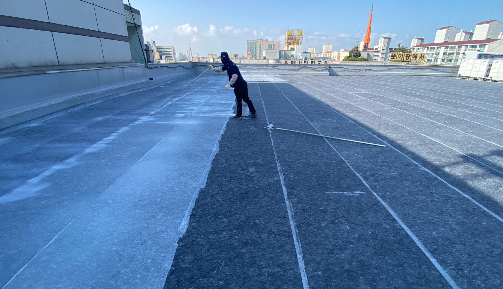 방수시트 작업을 마무리한 후 방수액을 도포하면 모든 방수 시공이 끝나게 됩니다. 침투 방수제는 방수 시공에 있어서 많은 도움을 주는 만큼 여러 과정에 쓰이게 됩니다. 이렇게 만들어진 옥상은 상처가 나더라도 그 부분만 고쳐서 계속해서 사용할 수 있어 반영구적인 방수수명을 갖게 됩니다.