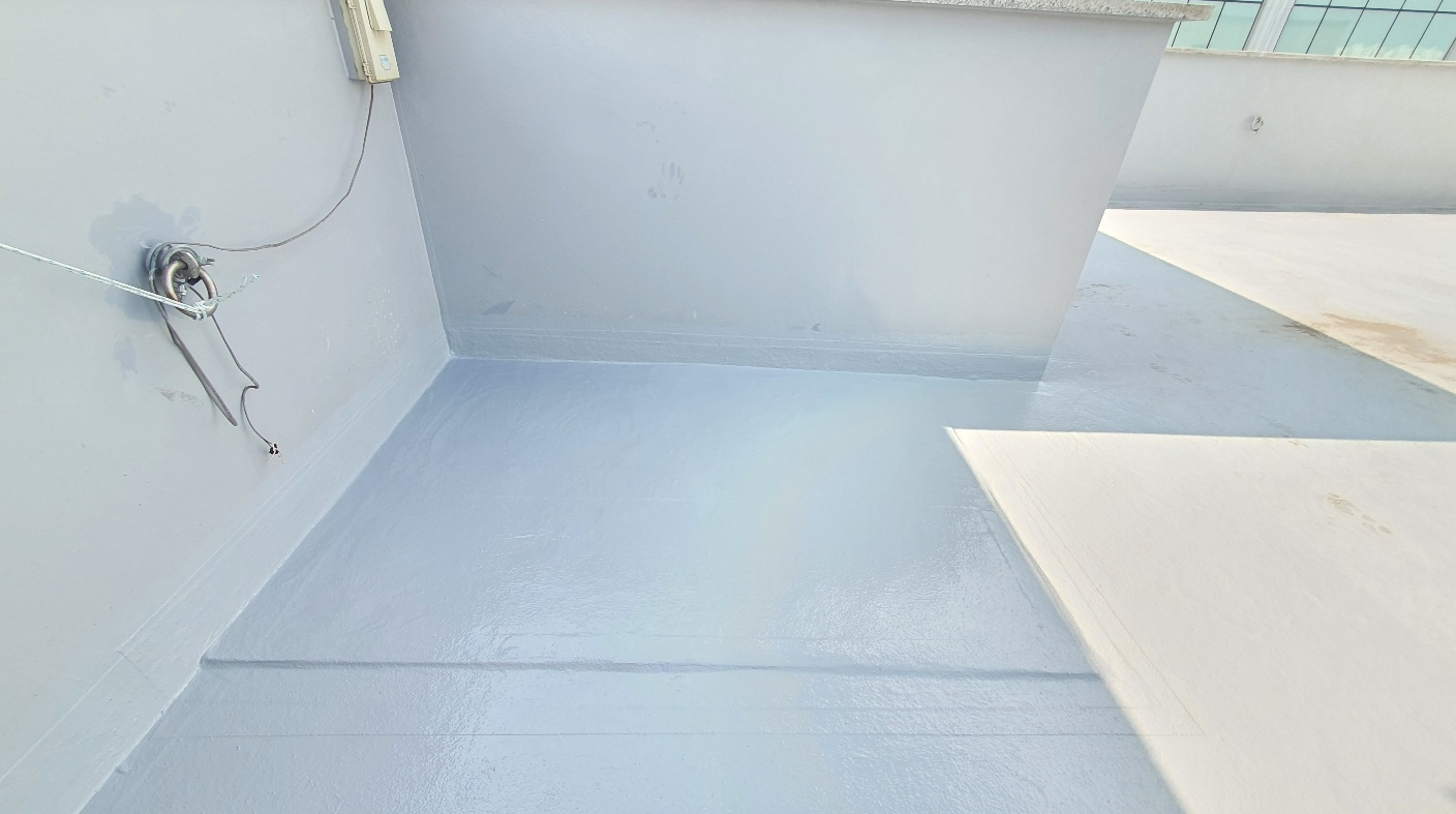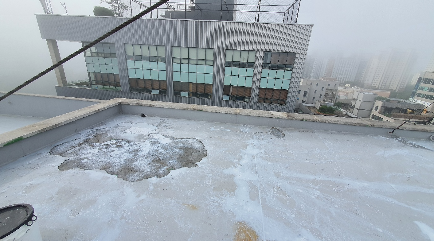 옥상 바닥에 기본적인 방수 효과를 주기 위해 프라이머 작업을 진행합니다. 프라이머 작업은 침투 방수액을 옥상 바닥 전체에 도포하는 작업입니다. 침투 방수액이 바닥에 스며들어 방수 효과를 주고 미세한 먼지와 이물질을 흡착하여 제거합니다.
