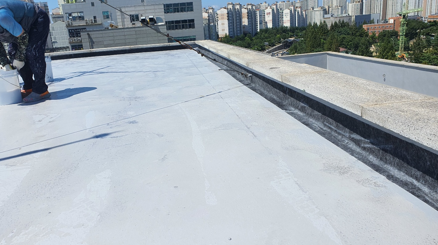 방수시트 작업을 마친 후 방수액을 도포합니다. 총 3차례 도포하여 방수층을 만들어주는 과정입니다. 작업에는 돌가루를 원료로 만든 친환경 무기질 방수액을 사용합니다.