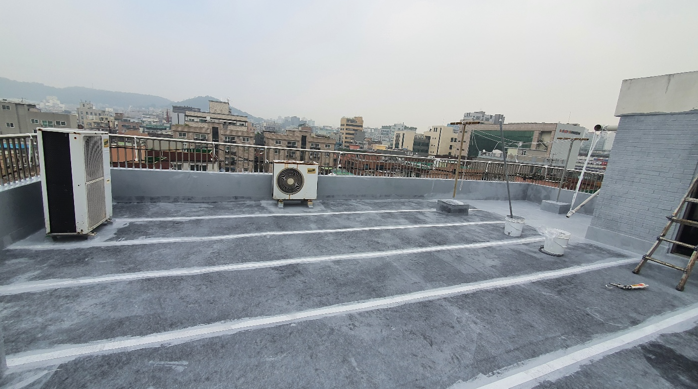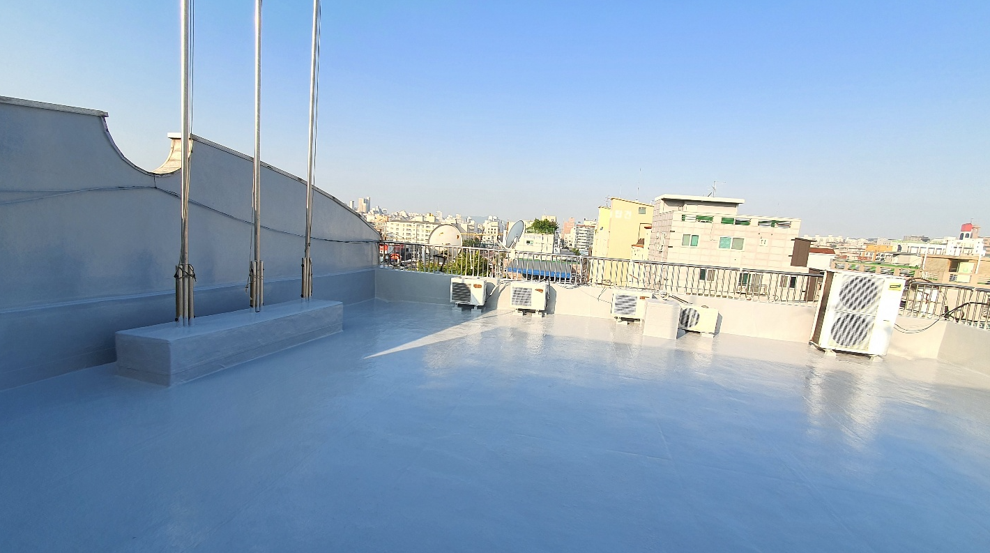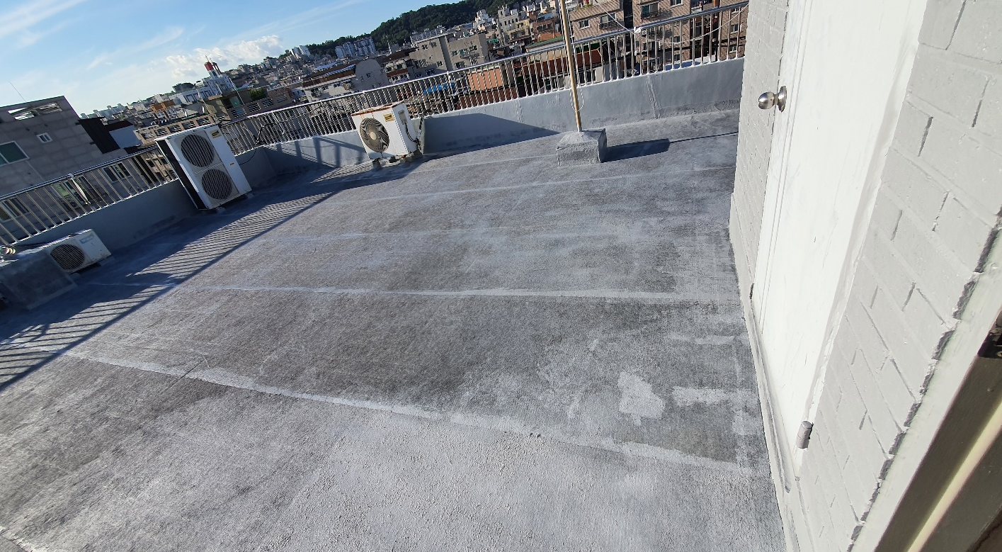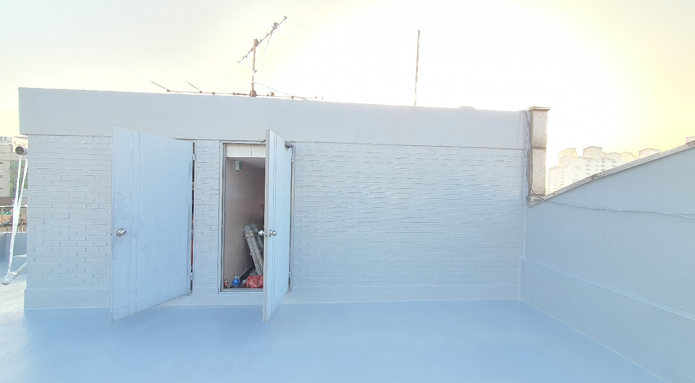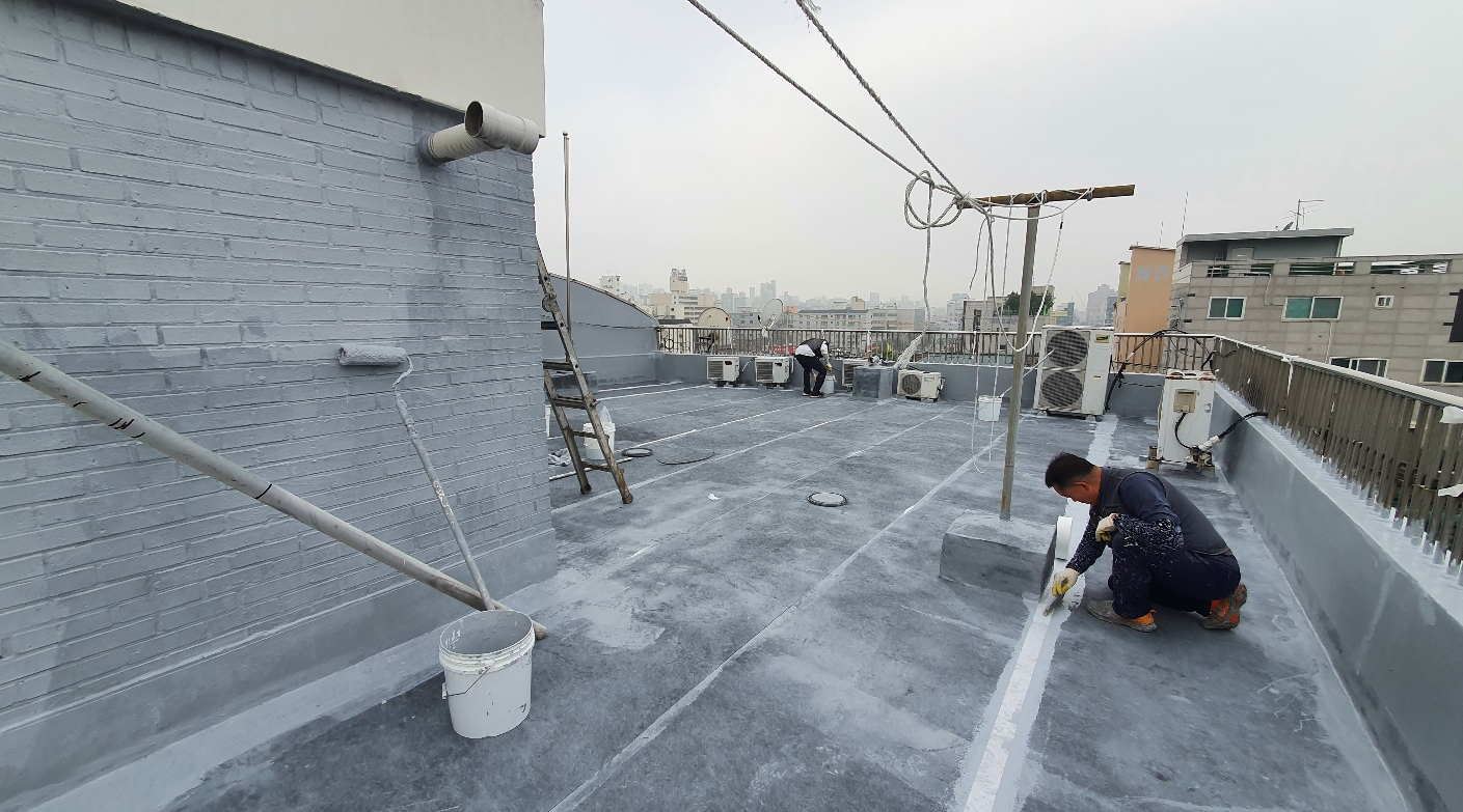 마지막으로 상도를 해주면 방수공사의 모든 과정이 마무리됩니다. 상도는 자외선을 차단하여 방수층을 보호하는 역할을 합니다. 이렇게 방수시트로 옥상의 크랙을 확실하게 잡아준 후 방수액을 칠해 방수공사를 시공하면 오래가고 튼튼한 옥상을 만들 수 있습니다. 완성된 옥상은 추후 상처가 나더라도 그 부분만 고쳐 계속해서 사용할 수 있습니다.