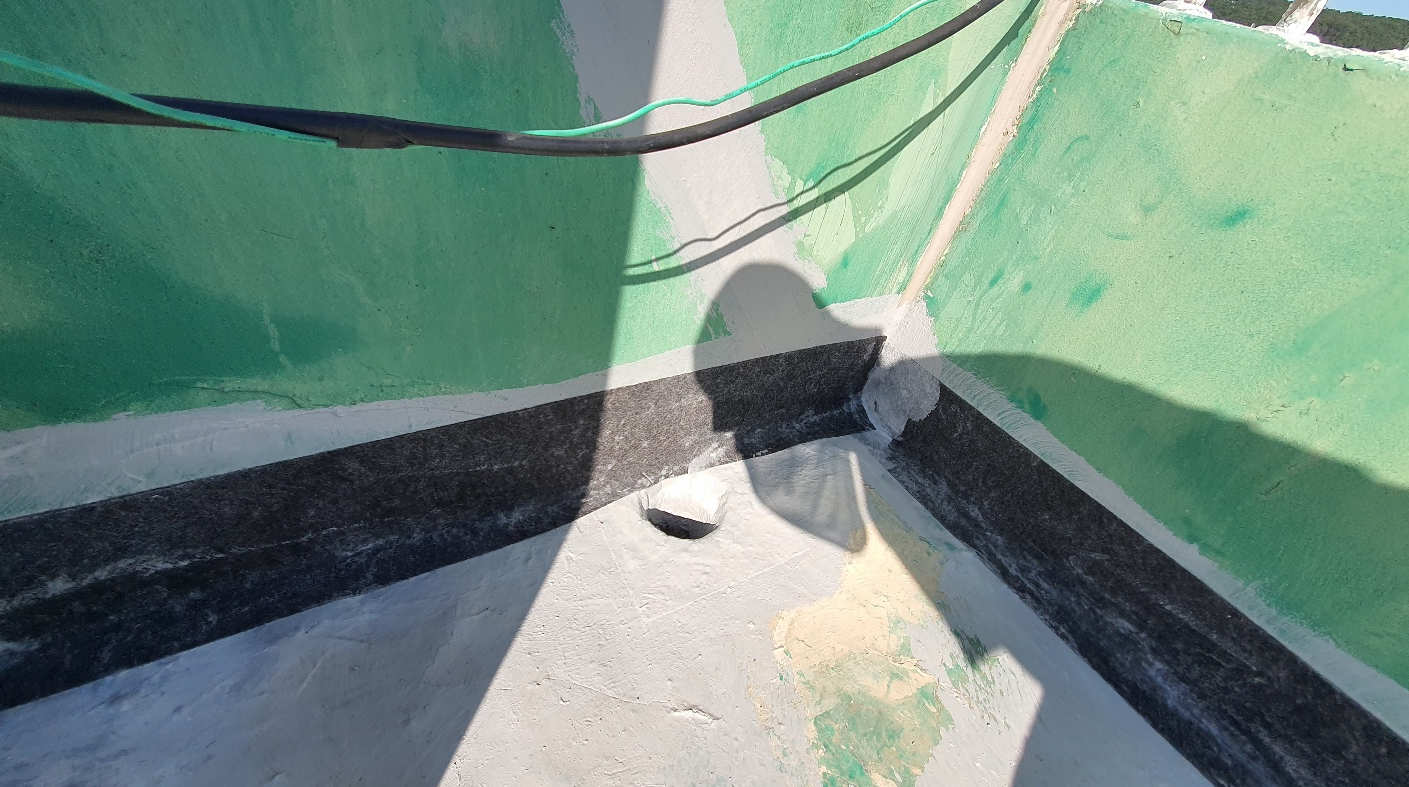 누수가 자주 발생하는 벽체의 조인트 부분과 우수관에는 기초 시트 작업을 진행합니다. 방수액을 먼저 칠한 후 방수시트를 시공 부위에 알맞은 크기로 잘라 부착하고 다시 방수액을 칠해 작업을 마무리합니다.