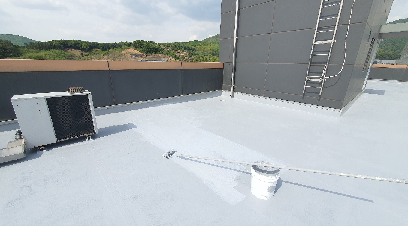 방수액은 옥상에 방수 시공을 하기 위해 사용하는 자재입니다. 방수액만을 사용하여 옥상에 방수 시공을 하면 시간이 단축되고 비용 또한 저렴합니다. 하지만 옥상의 크랙을 해결할 수 없기 때문에 하자가 재발할 가능성이 높아집니다. 따라서 시트로 크랙을 확실하게 잡은 후 방수액을 칠해 마무리하는 것이 더욱 효과적이라고 할 수 있습니다.