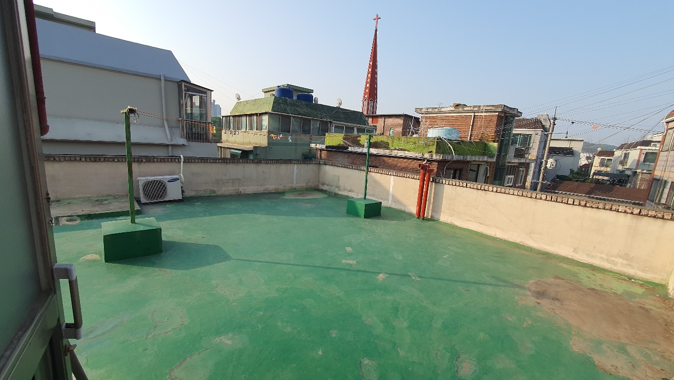 우선 옥상에 쌓인 먼지와 각종 이물질을 깨끗하게 제거하기 위해 물청소 작업을 진행합니다. 물청소와 함께 바탕 정리 작업도 진행합니다. 하자가 심해 더 이상 쓸 수 없는 바닥을 제거하고 계속해서 쓸 수 있는 부분만 남기는 작업입니다.