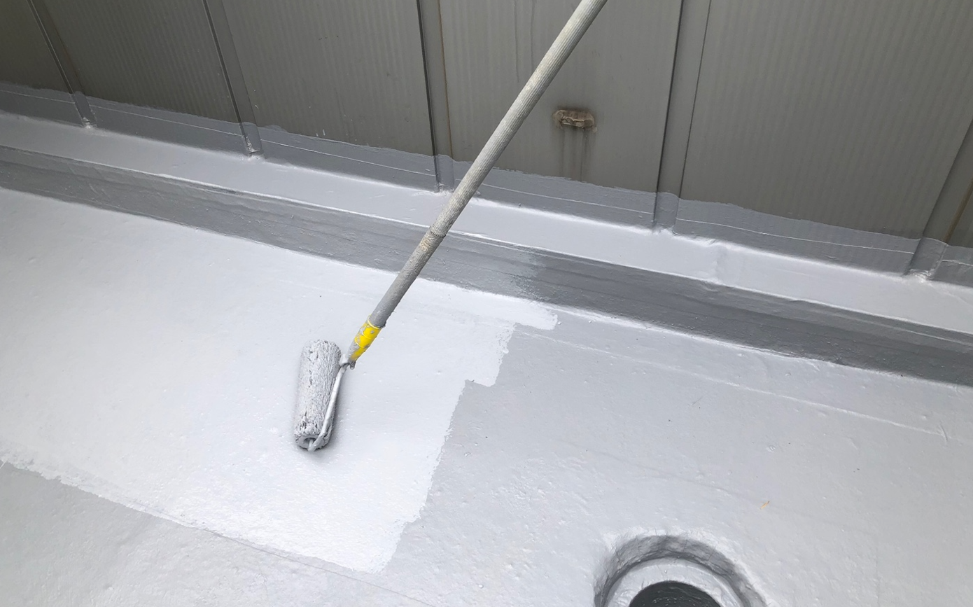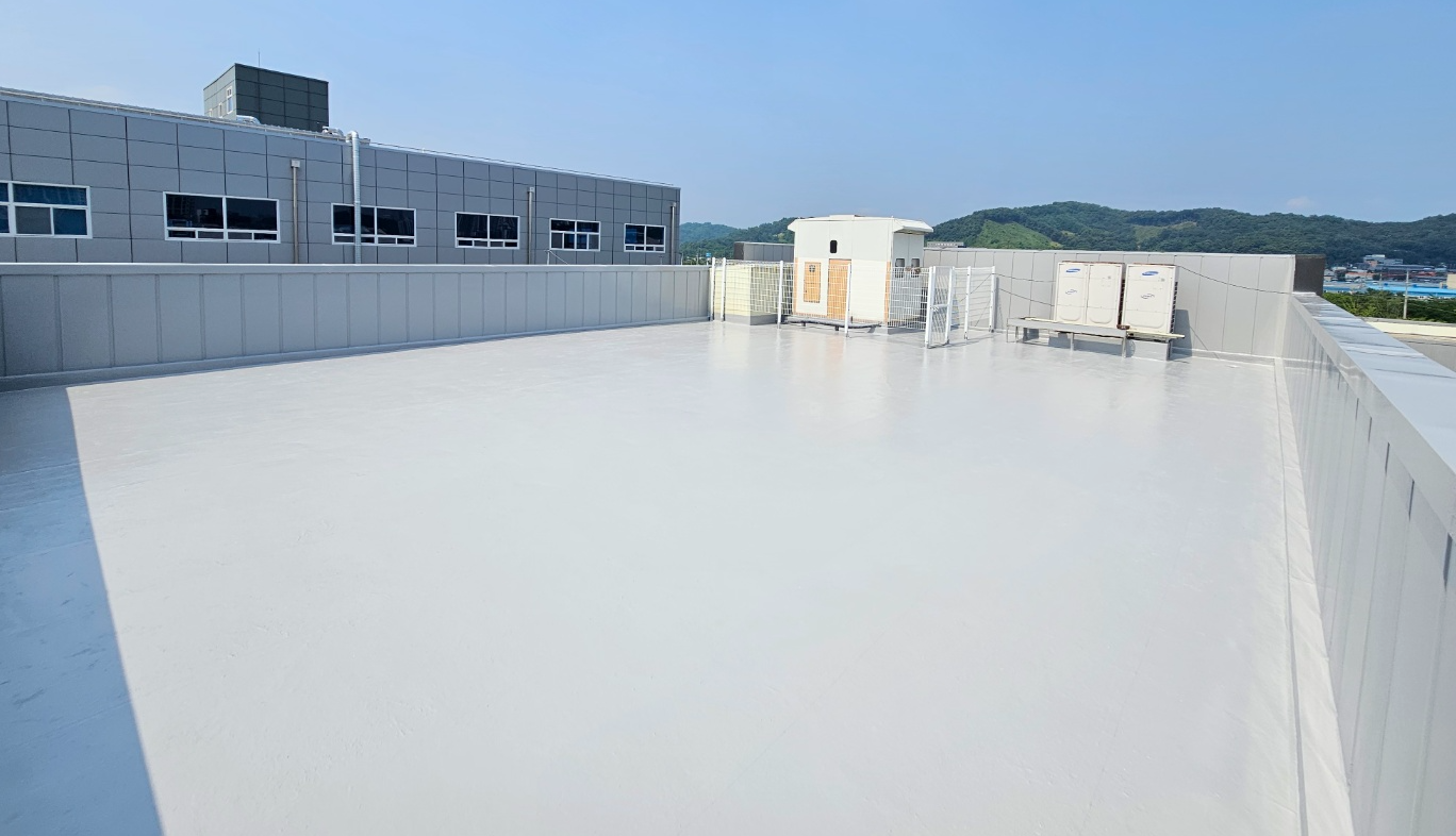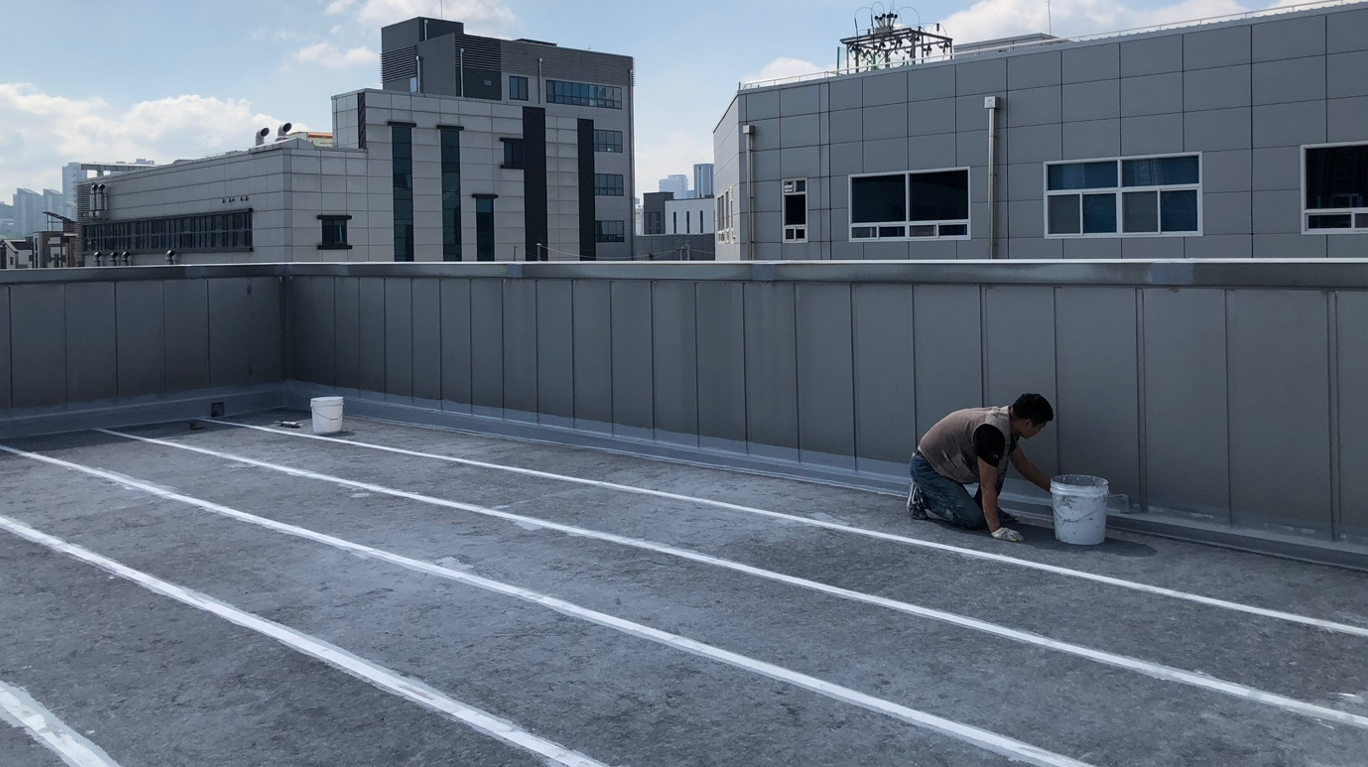 마지막 과정으로 상도 작업을 진행합니다. 상도는 자외선을 차단하여 방수층을 보호하기 위한 작업으로 물이 계속해서 고이는 곳에는 꼭 상도 작업을 하는 것이 좋습니다. 이것으로 복합방수의 모든 과정이 마무리됩니다. 완성된 옥상은 이후 바닥에 상처가 나더라도 그 부분만 고쳐서 문제없이 계속 사용할 수 있습니다.