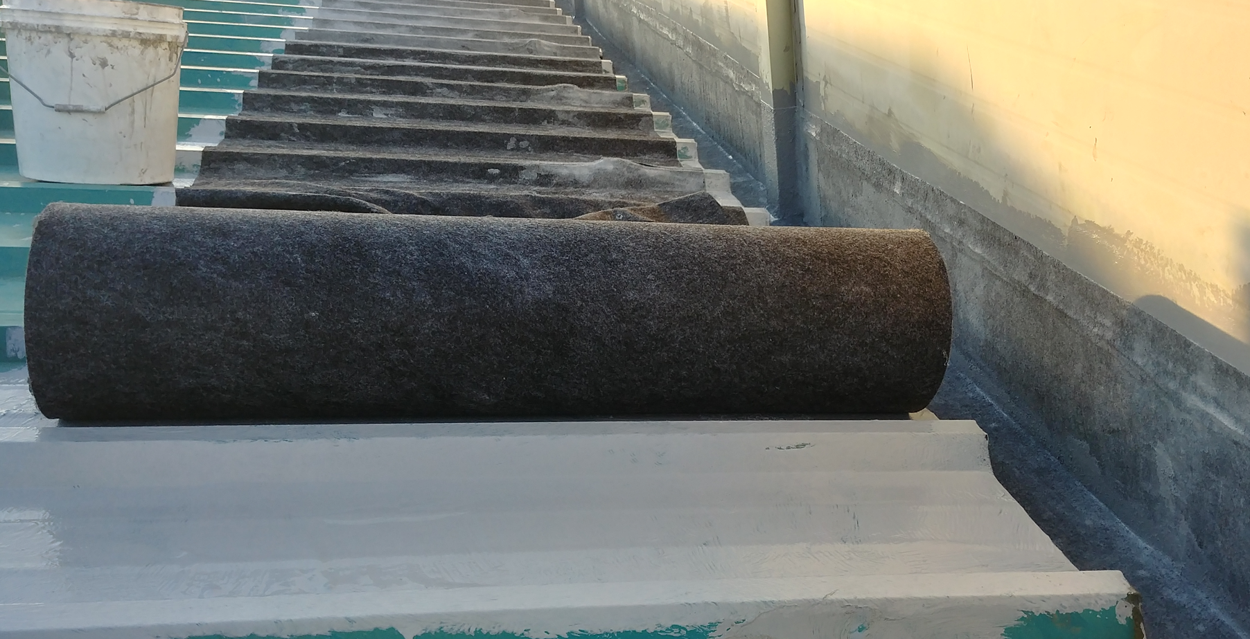 이제 방수액 도포 작업을 진행합니다. 방수시트 작업을 마무리한 후 방수액을 도포하는 작업으로 총 3차례 도포합니다. 돌가루를 원료로 만든 친환경 무기질 방수액을 사용하여 인체에 무해합니다.