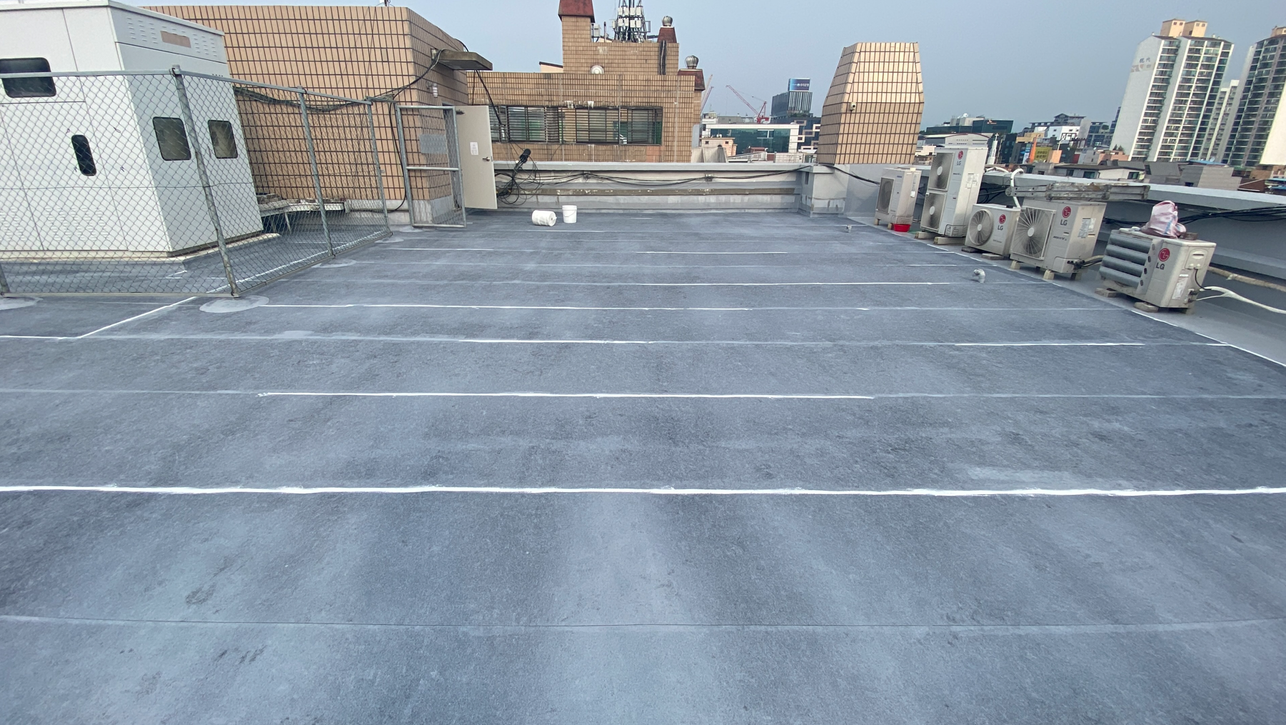 마지막으로 자외선을 차단하여 방수층을 보호하기 위해 상도 작업을 진행합니다. 이렇게 방수시트를 제대로 활용하여 옥상의 크랙을 잡는다면 누수 없이 오랫동안 사용할 수 있는 옥상을 만들 수 있습니다. 완성한 옥상은 반영구적인 수명을 지녀 만약 상처가 나더라도 그 부분만 보수하여 계속해서 사용할 수 있습니다.