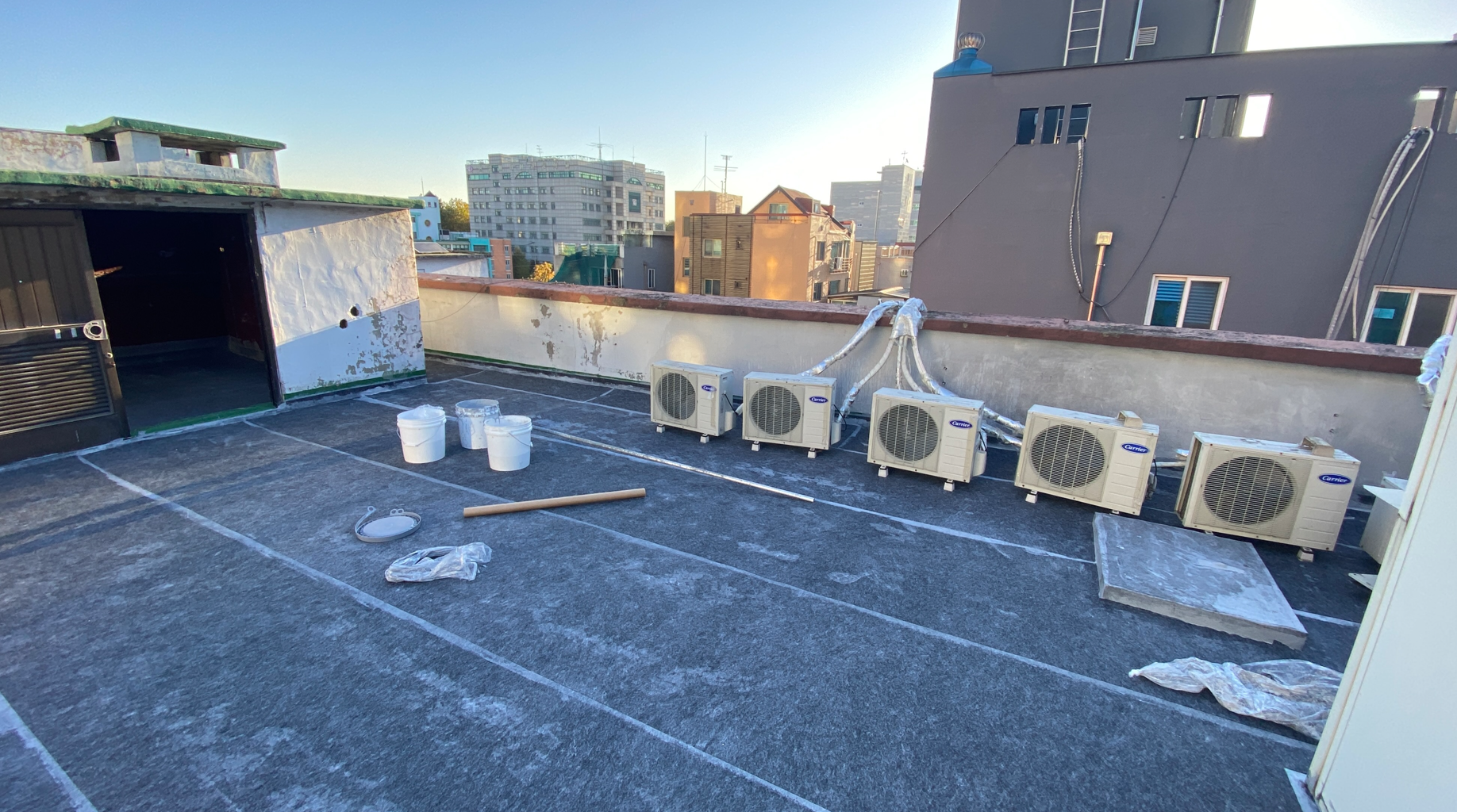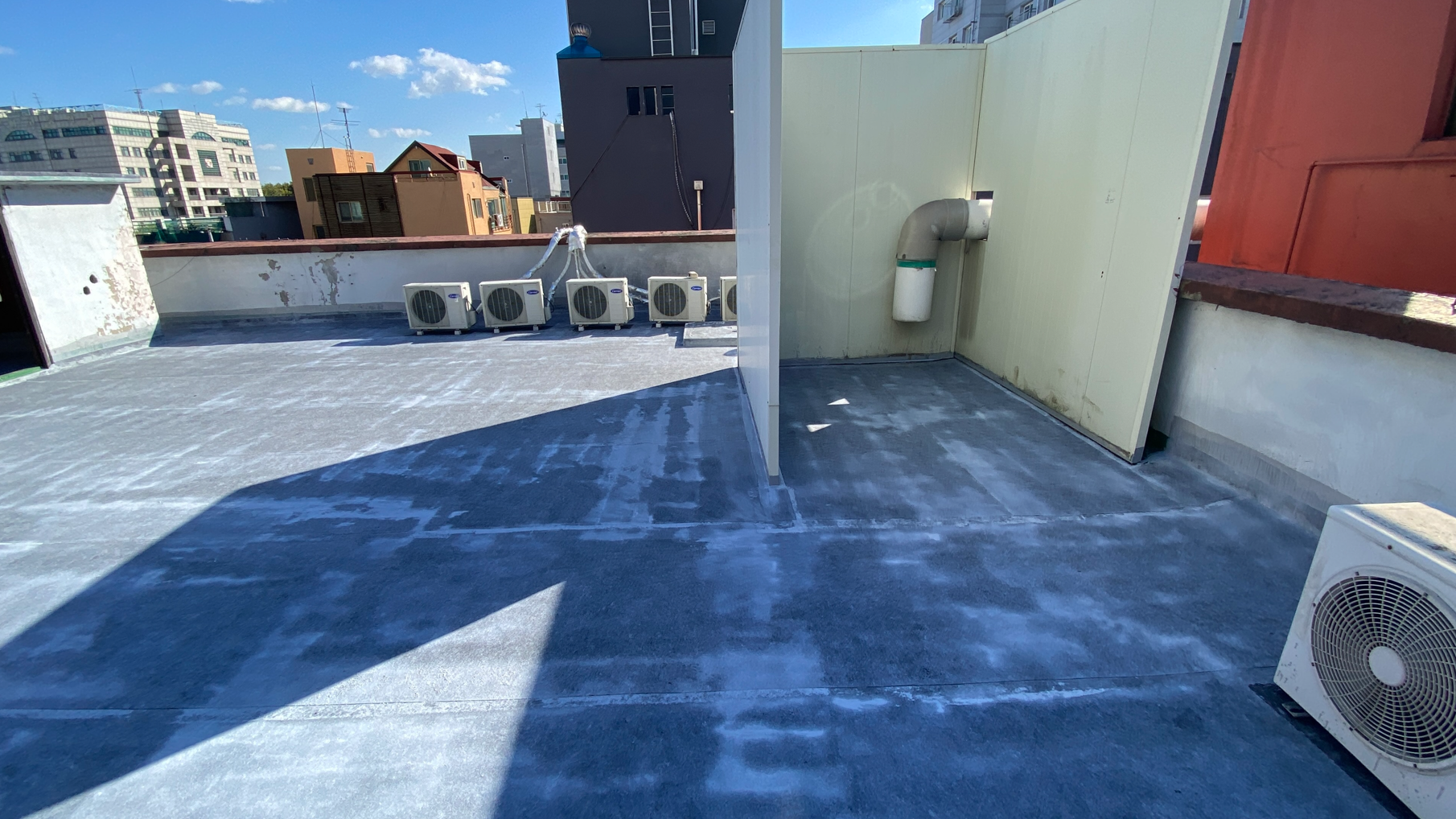마지막 작업으로 상도를 진행합니다. 상도는 자외선을 차단하여 방수액을 보호하기 위한 작업입니다. 물이 자주 고이는 곳에는 필히 작업하는 것이 좋습니다. 이처럼 방수액에 더해 방수시트를 함께 사용하여 옥상방수를 시공하면 훨씬 튼튼하고 견고한 옥상을 만들 수 있습니다. 완성한 옥상은 이후 상처가 생기더라도 그 부분만 보수하여 반영구적으로 사용할 수 있습니다.
