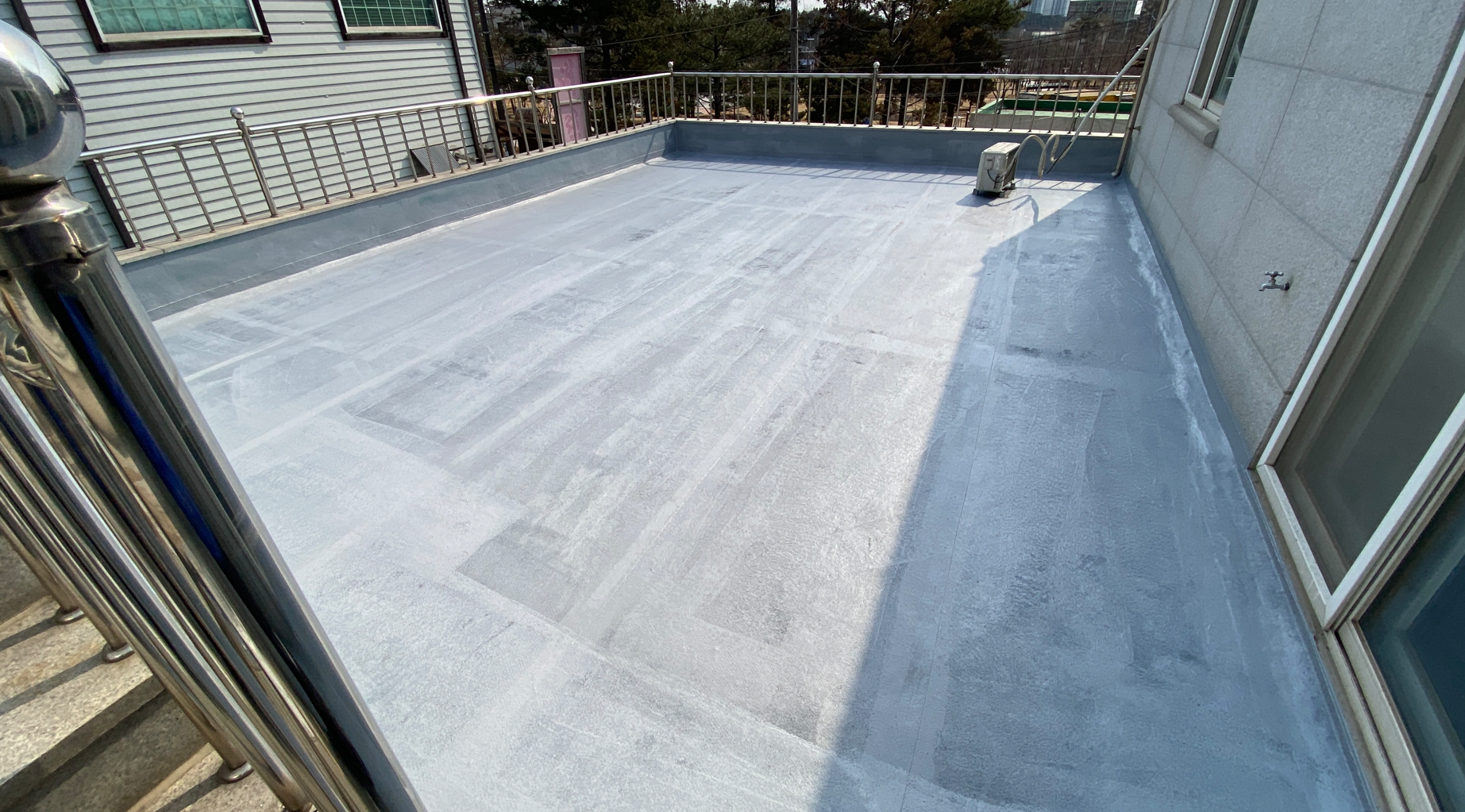바닥 정리와 물청소까지 마친 후 프라이머 작업을 진행합니다. 프라이머 작업은 침투 방수액을 옥상 전체에 도포하는 작업입니다. 미세하게 남은 먼지와 이물질을 흡착하여 제거할 수 있고 옥상 전체에 기초적인 방수 효과를 줄 수 있습니다.