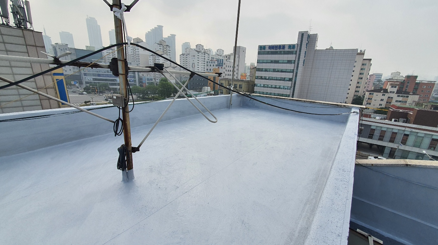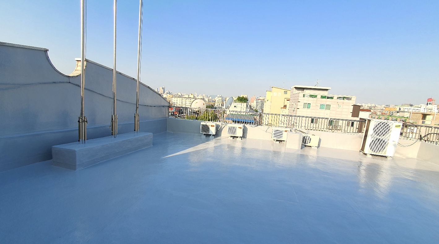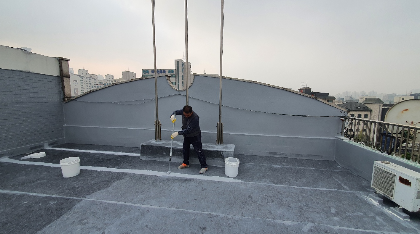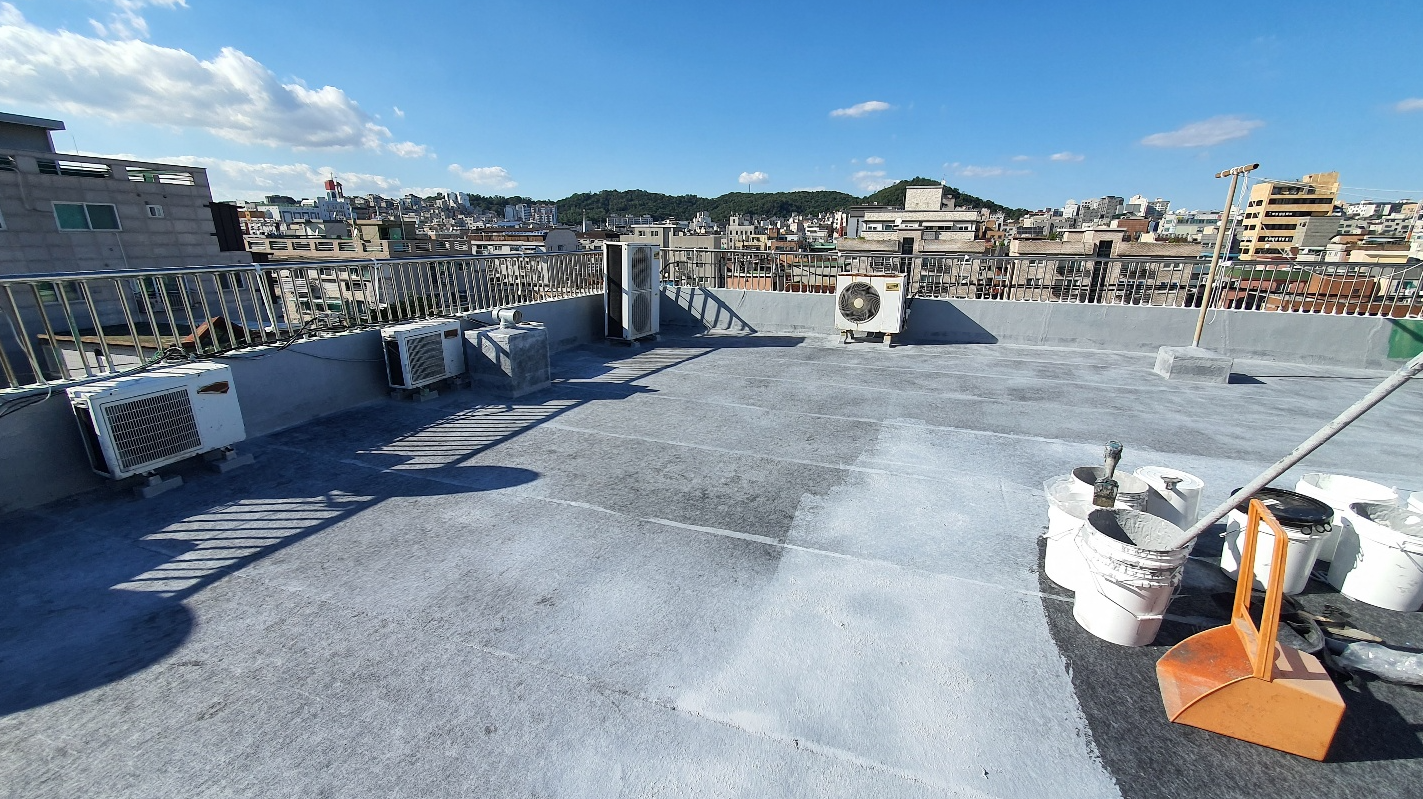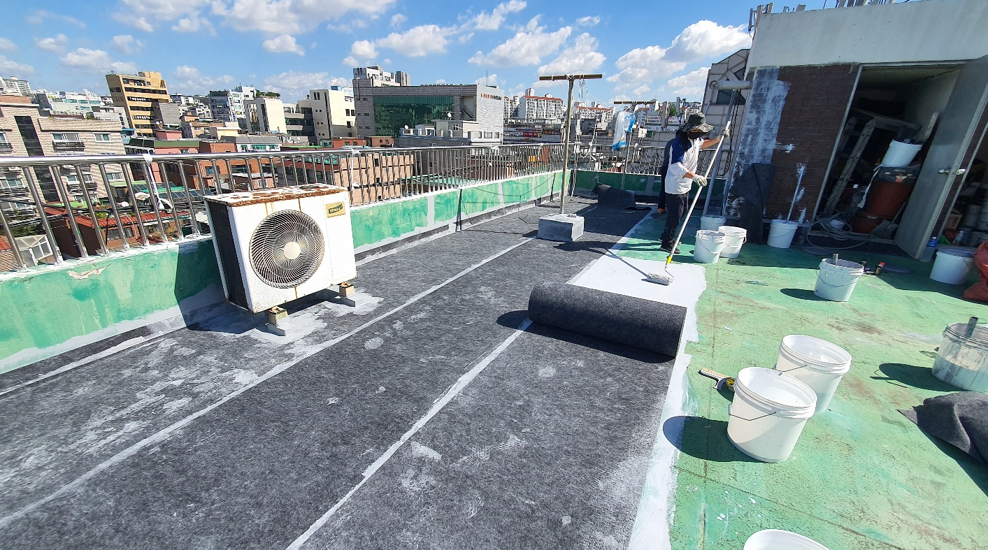마지막 작업으로 상도를 진행합니다. 상도는 자외선을 차단하여 방수층을 보호하는 역할을 합니다. 물이 자주 고이는 곳이 있다면 필히 상도를 하는 것을 추천합니다. 방수 업체를 잘 선정하여 방수액과 방수시트를 함께 복합적으로 사용해 복합 시트 방수로 시공을 한다면 옥상을 보다 오랫동안 사용할 수 있습니다.