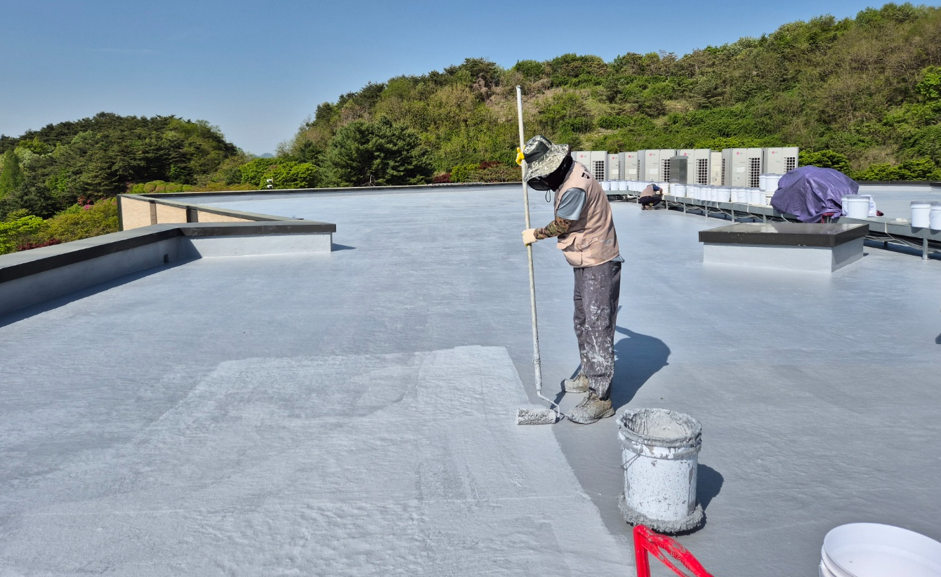 시트 방수의 마지막 작업으로 상도를 진행합니다. 상도는 자외선을 차단하기 위한 작업으로 물이 고이는 곳에는 필수로 칠하는 것이 좋습니다. 이처럼 옥상의 크랙을 시트 방수로 잡아 누수를 해결하고 그 위에 방수액을 칠해 방수력을 올리면 더욱 튼튼한 옥상을 만들 수 있습니다. 시트 방수로 시공한 옥상은 이후 상처가 나더라도 그 부분만 보수하여 계속해서 사용할 수 있습니다.