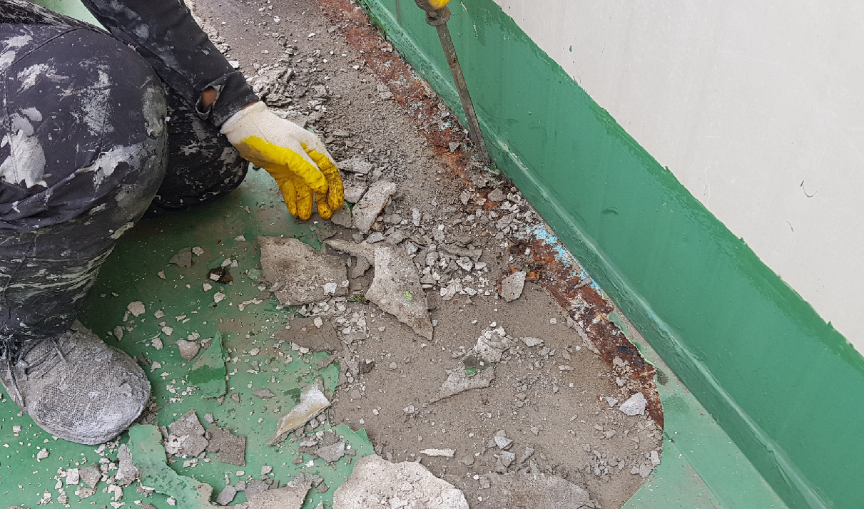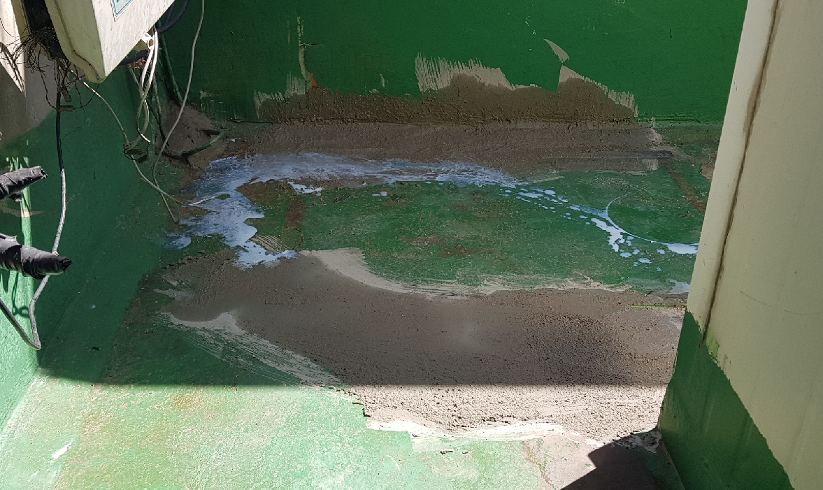 바닥을 들어내어 움푹 패인 곳에 몰탈