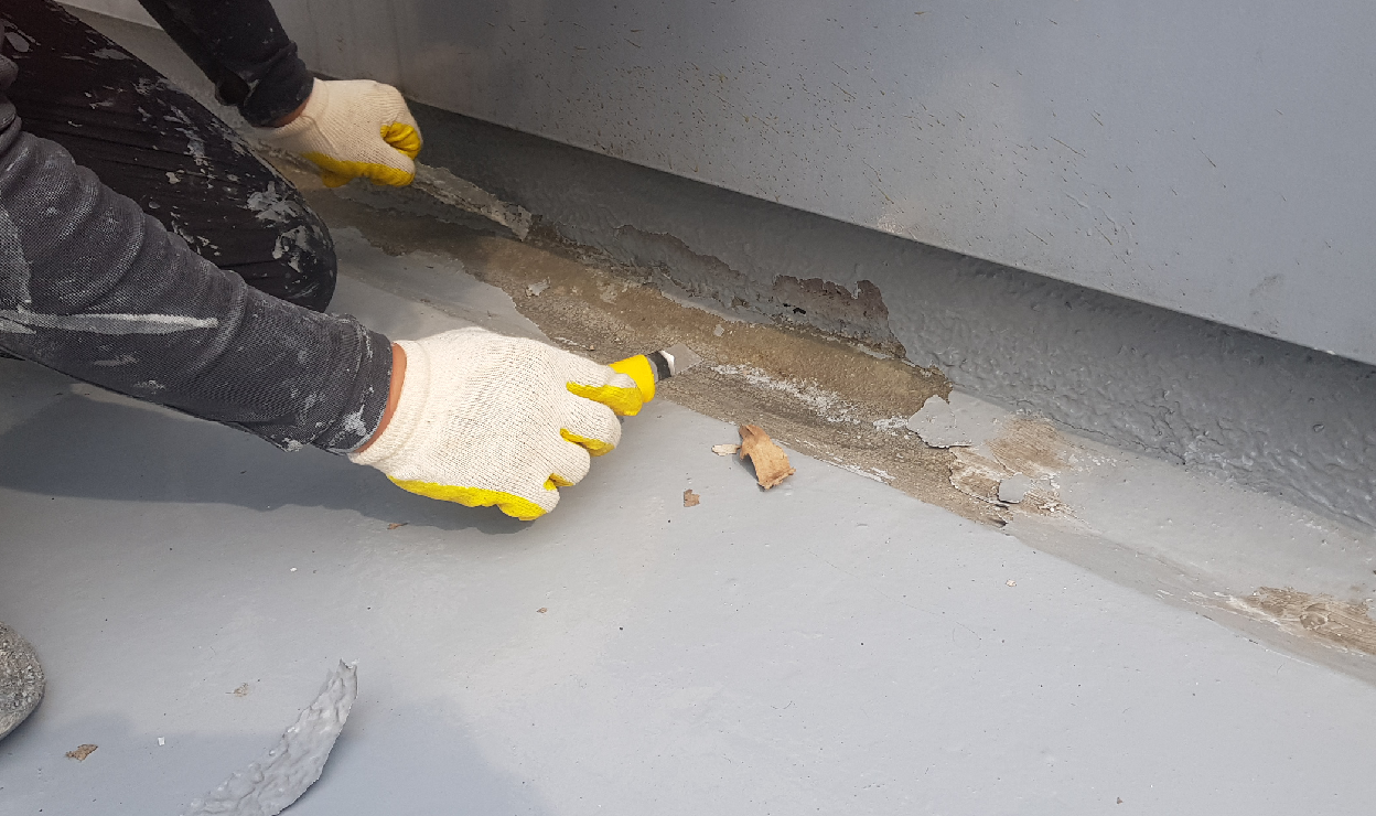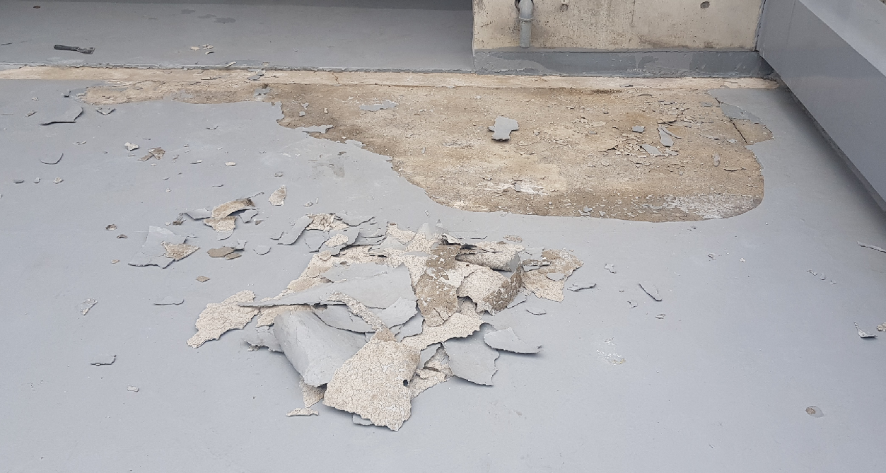 앞선 바닥 정리 과정에서 들뜬 우레탄