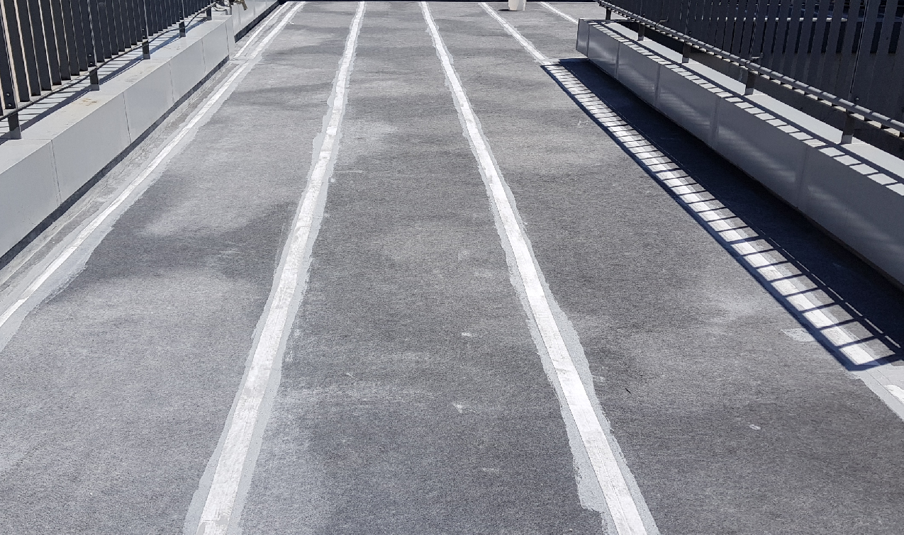 맨바닥과 그 위에 칠해놓은 우레탄 사이에