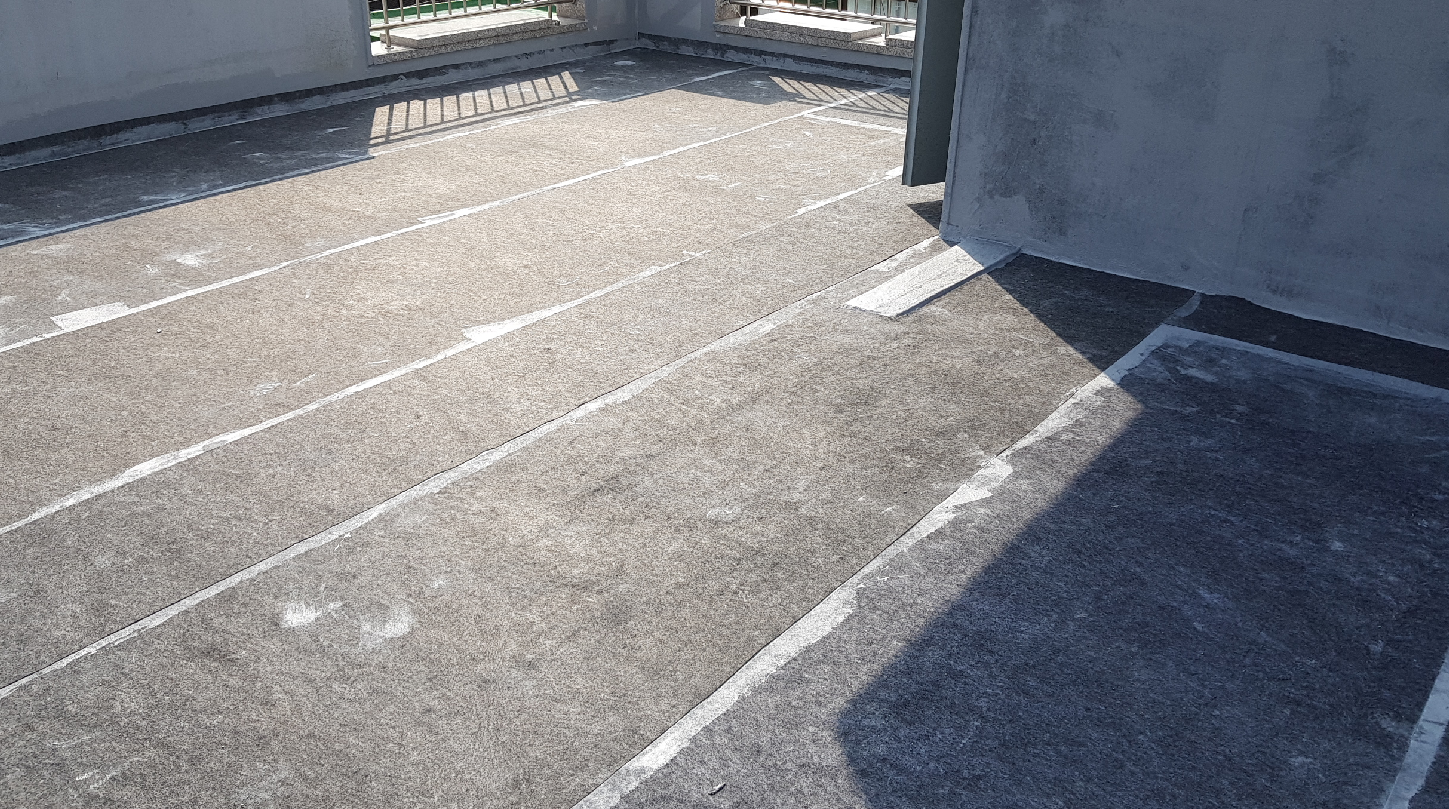 바닥 시트 작업으로 덮은 방수 시트 사이에도