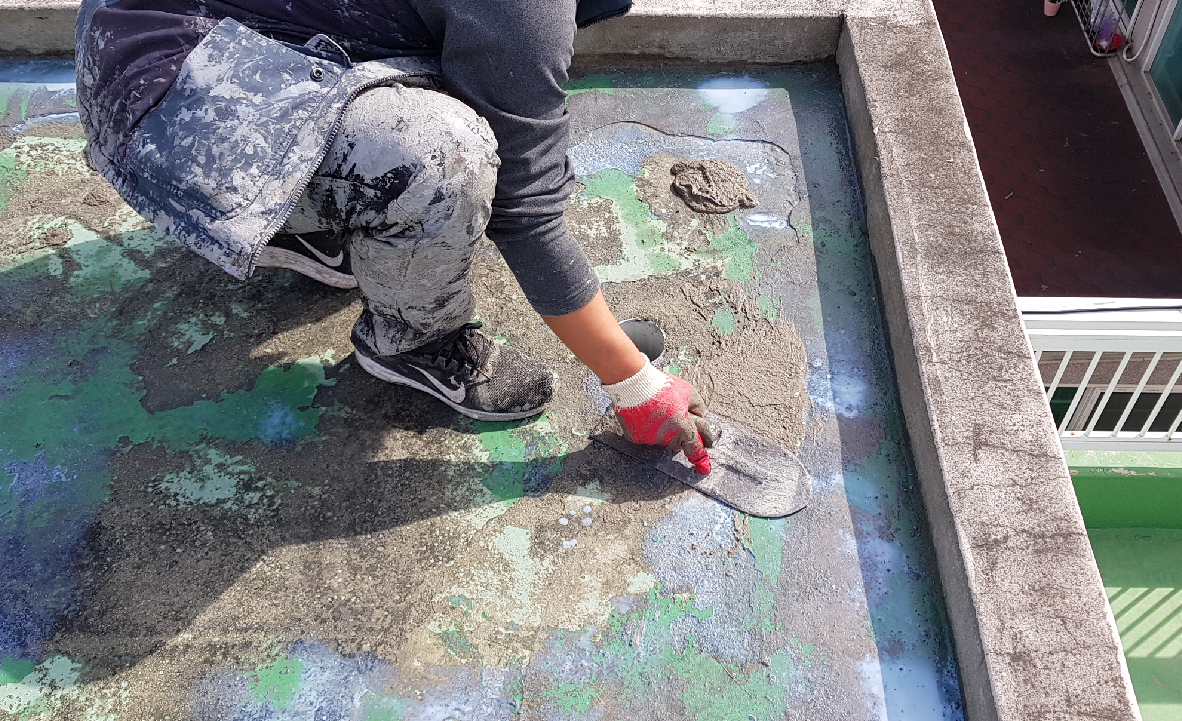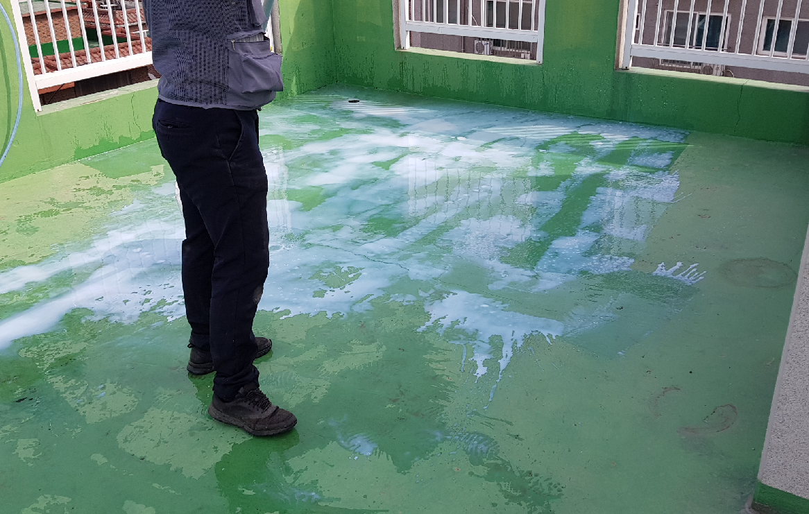 장시간 관리 받지 못하고 방치된 옥상 바닥은