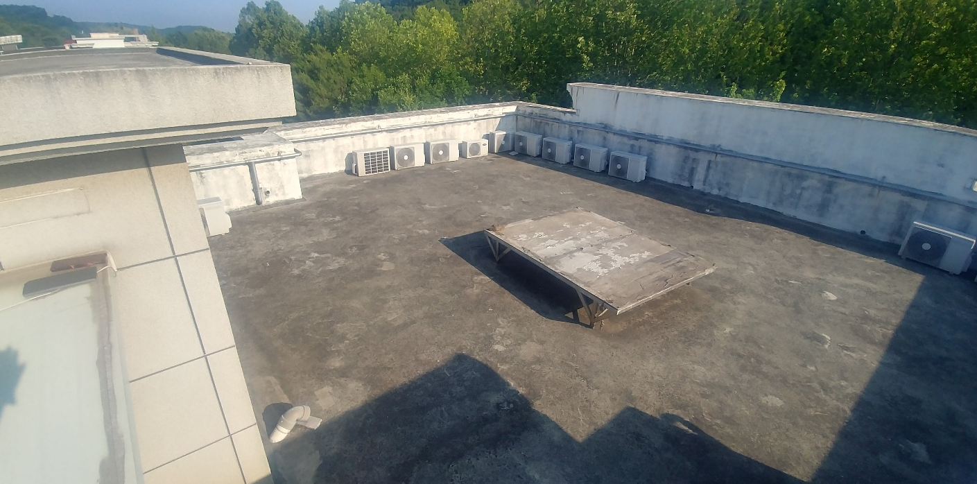 작업으로 바닥의 먼지나 이물질을 옥상 바닥에