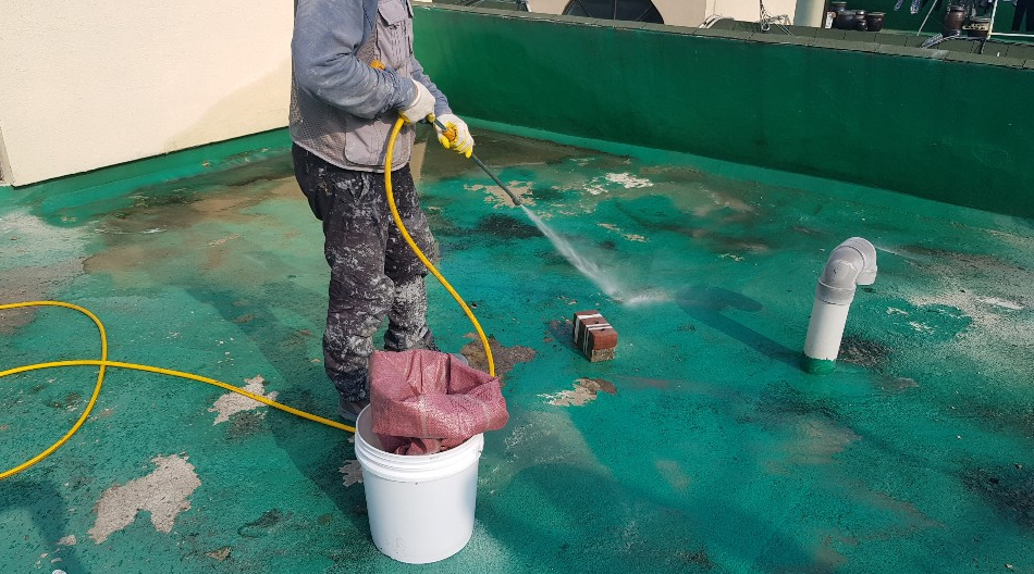 그런 다음 옥상 바닥에 남아있는 먼지와 이물질을