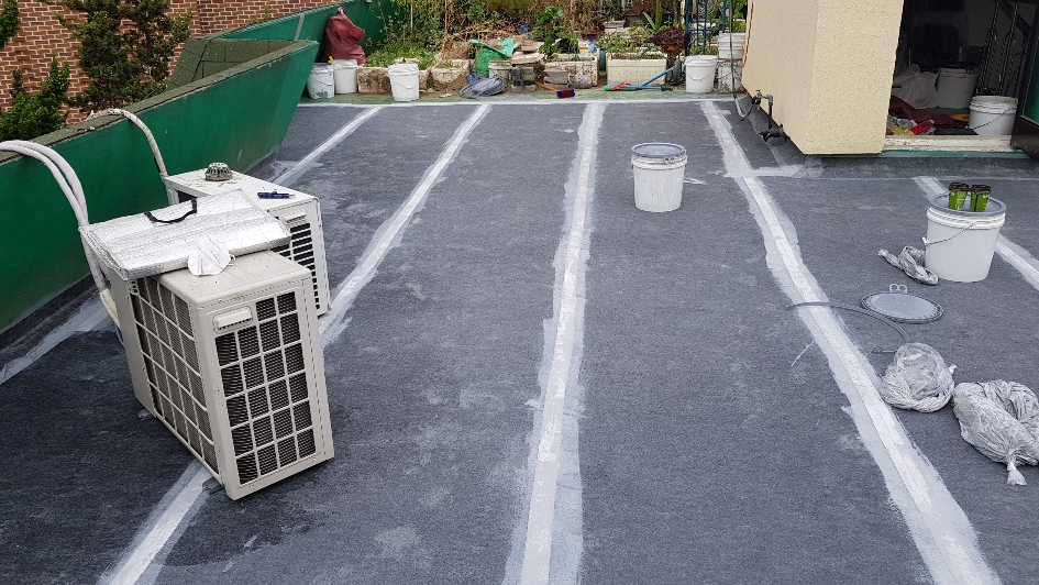 신축성이 뛰어난 방수시트를 옥상 바닥에 덮는