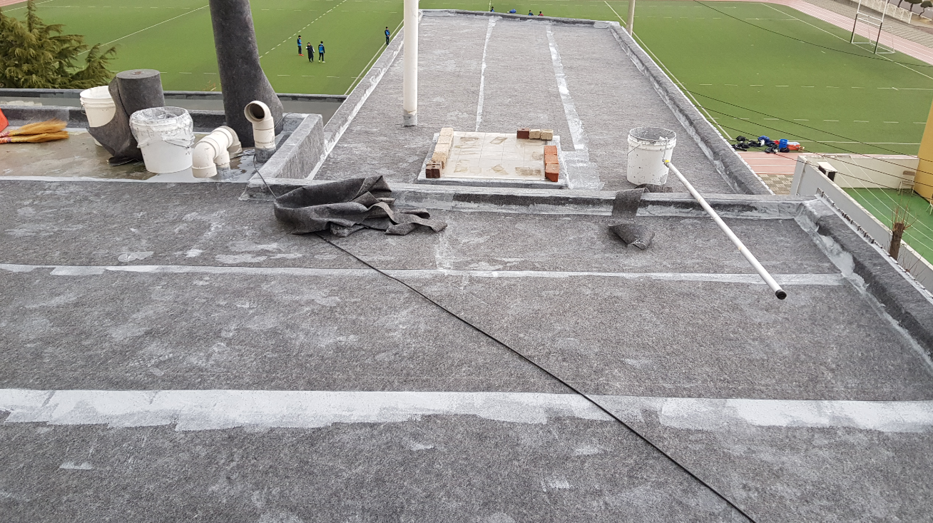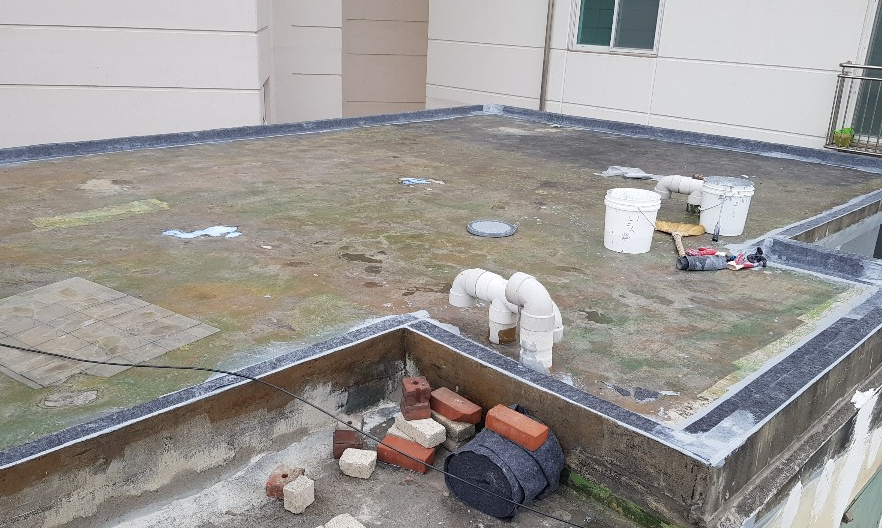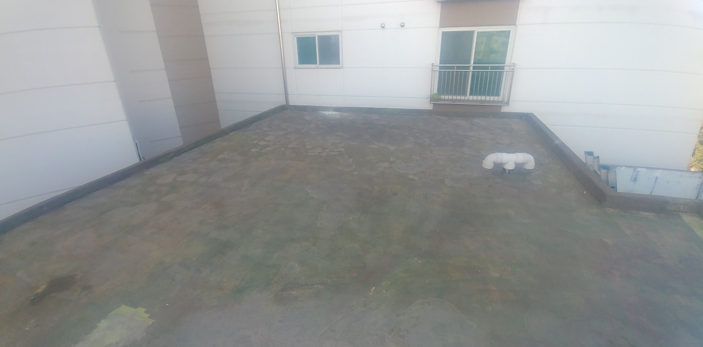먼지가 잔뜩 쌓인 지저분한 상태로 시트방수를 진행할