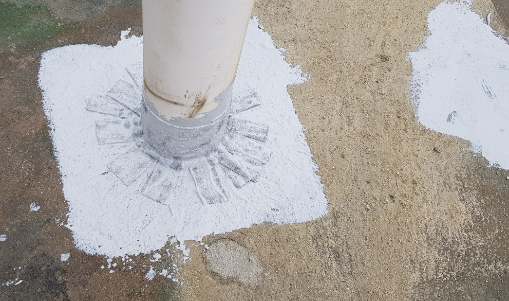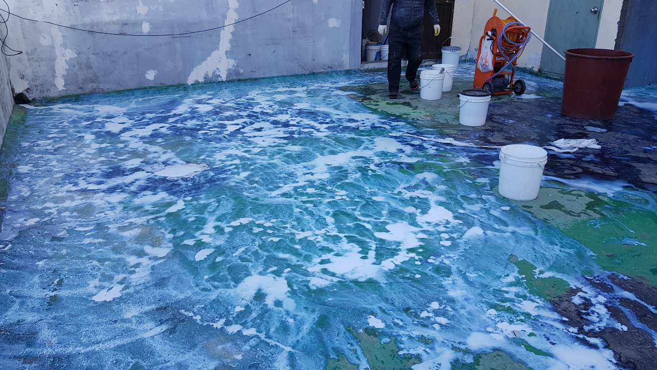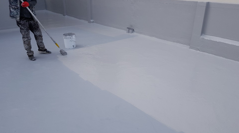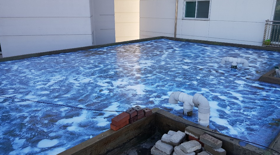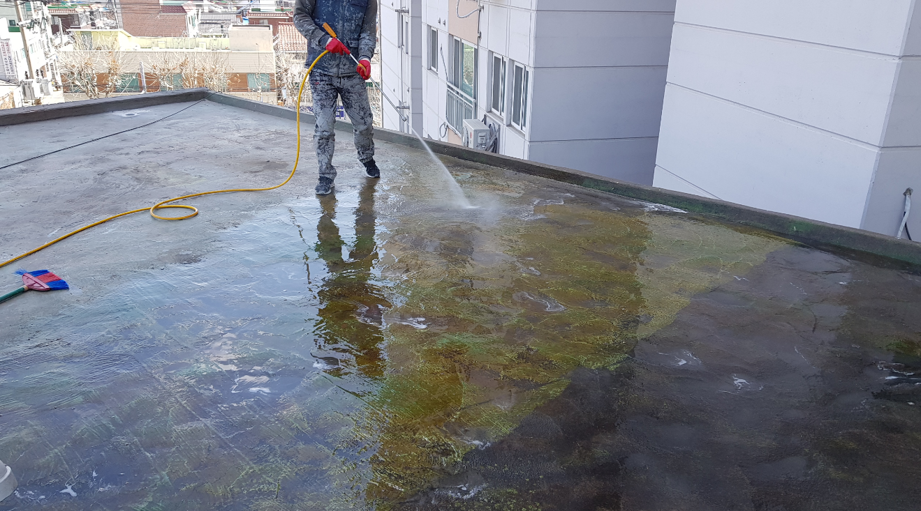 옥상 바닥 전체에 도포합니다. 이렇게 하면 남아있는