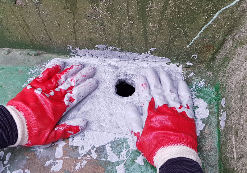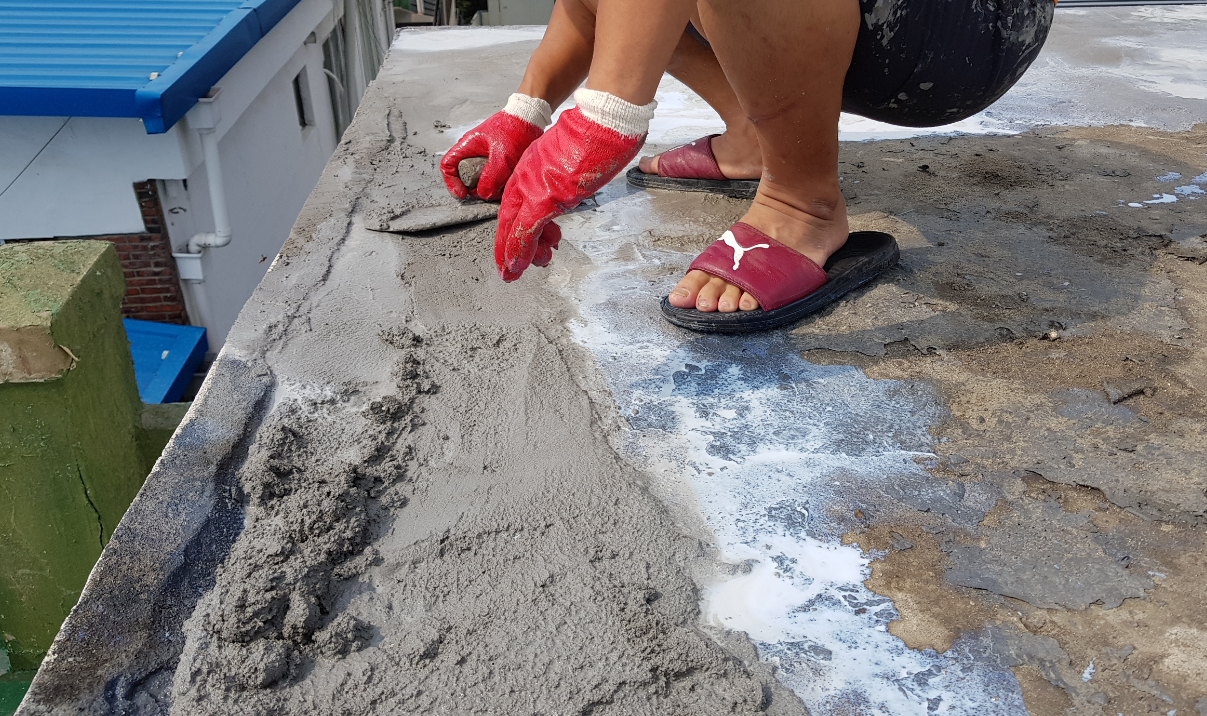 미장 작업은 몰탈(시멘트)과 침투 방수제를