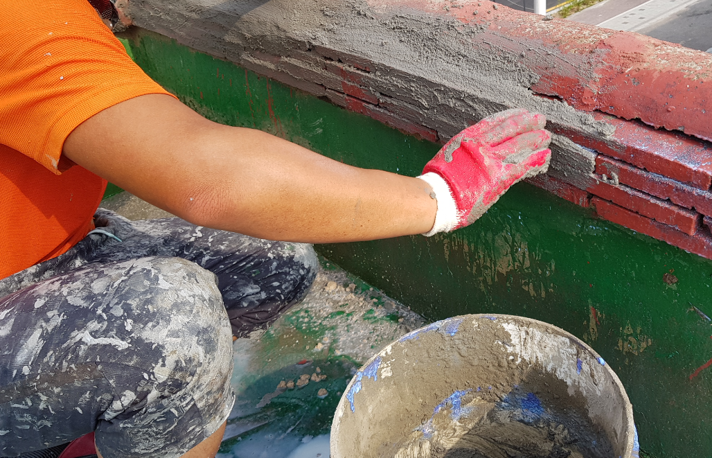부분이 있어 미장 작업을 진행하는 모습입니다.