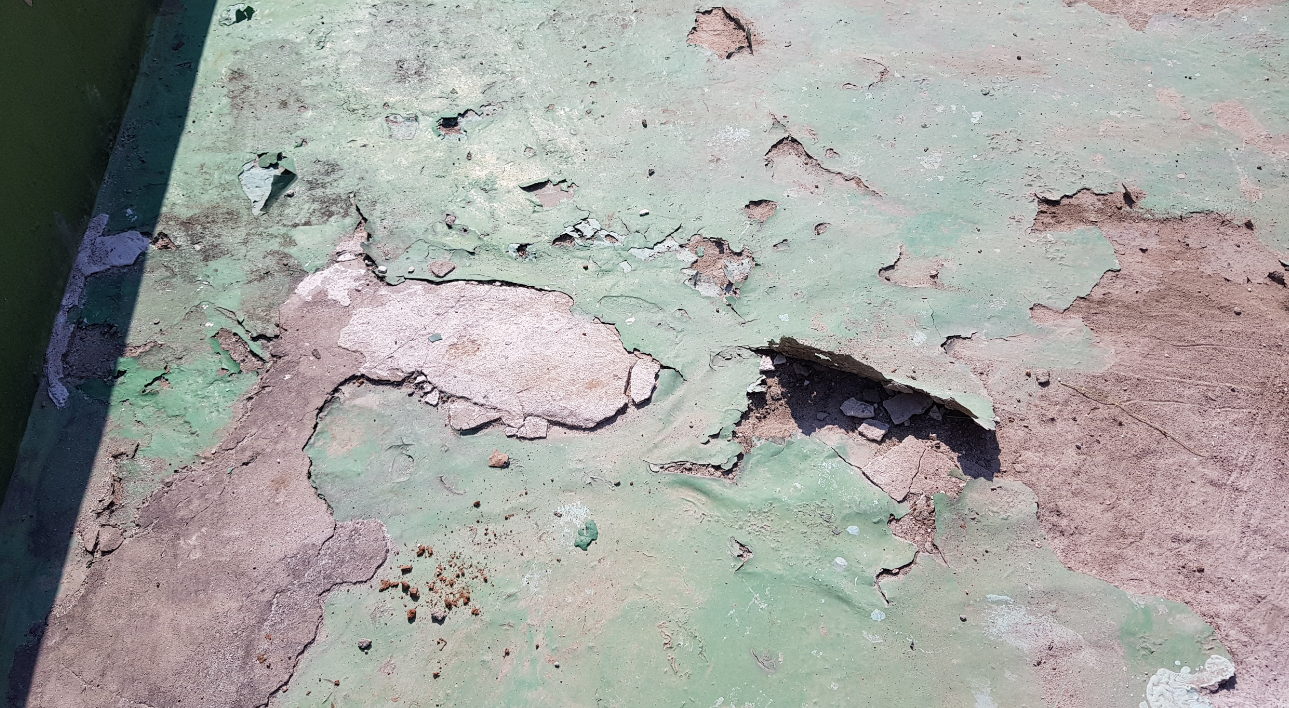 방수로 기존에 시공된 부분이 벗겨지고 뜯겨나가