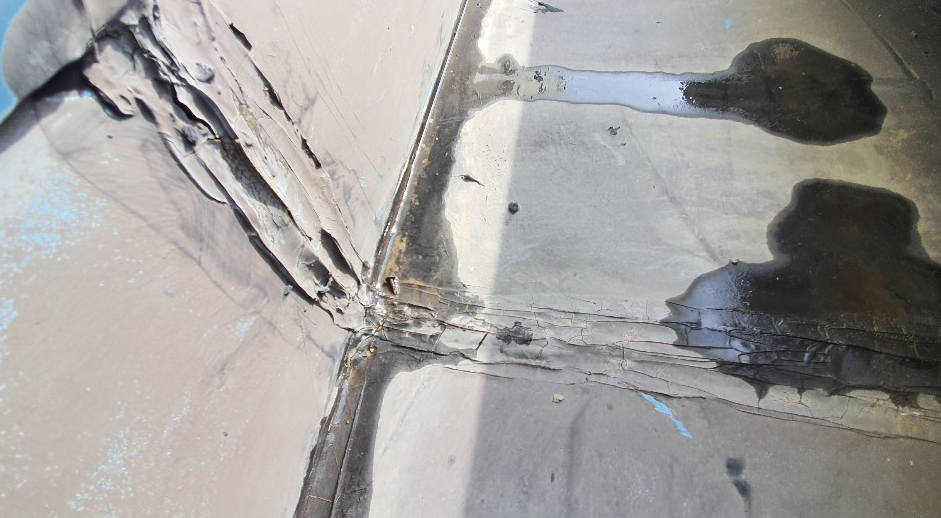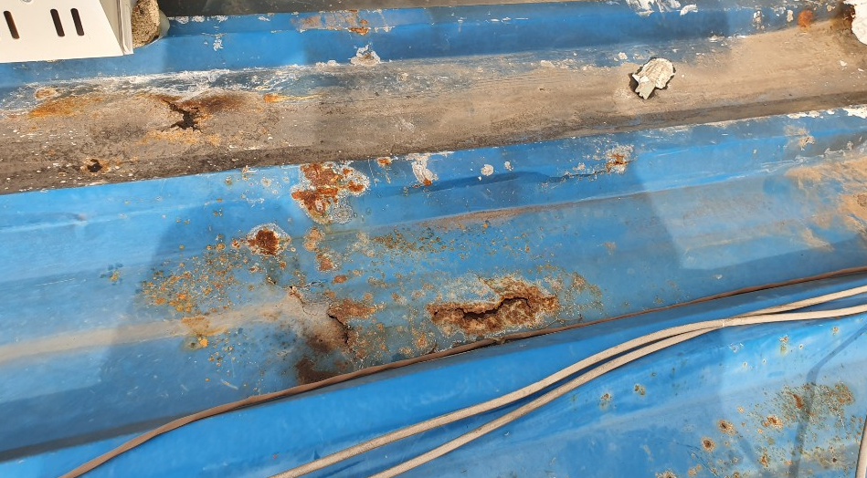 지붕 자체에 녹이 슬어 갈라져 있습니다.