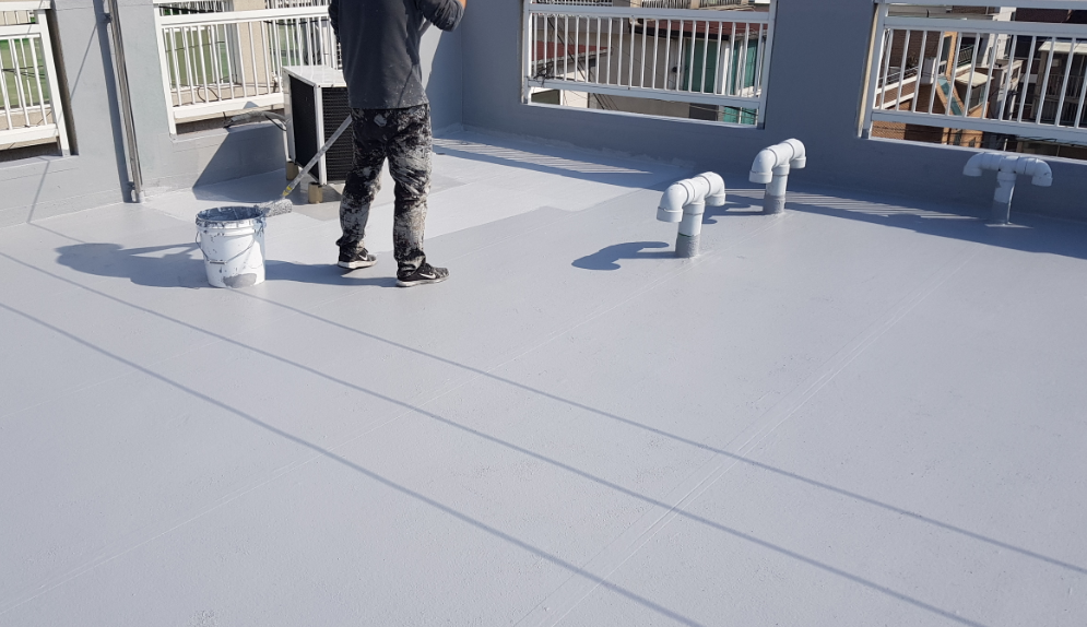 프라이머 작업을 진행합니다. 이 과정은 옥상의 먼지와