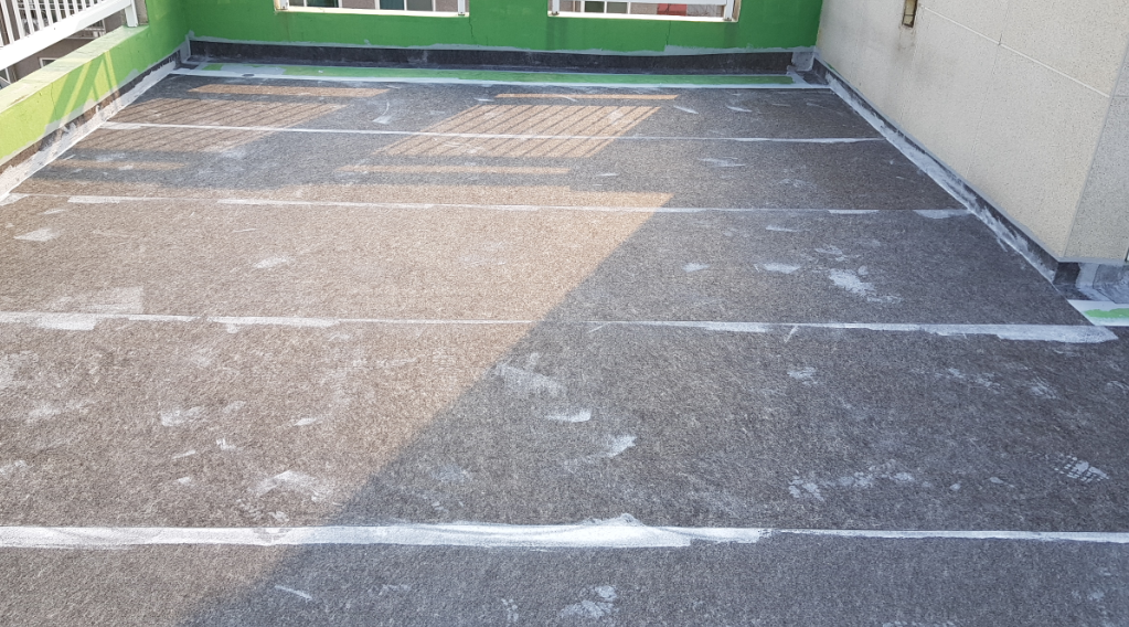 옥상방수의 다음 과정은 기초 시트 작업입니다.