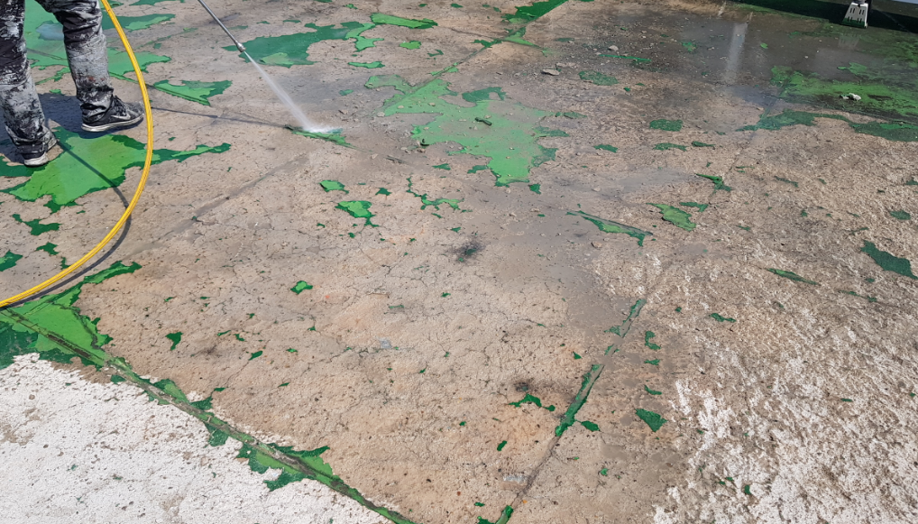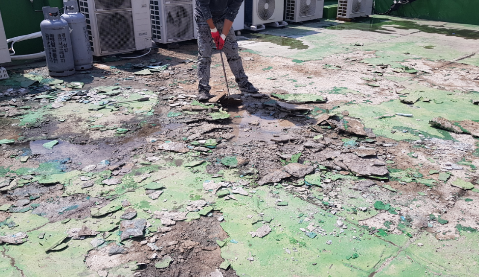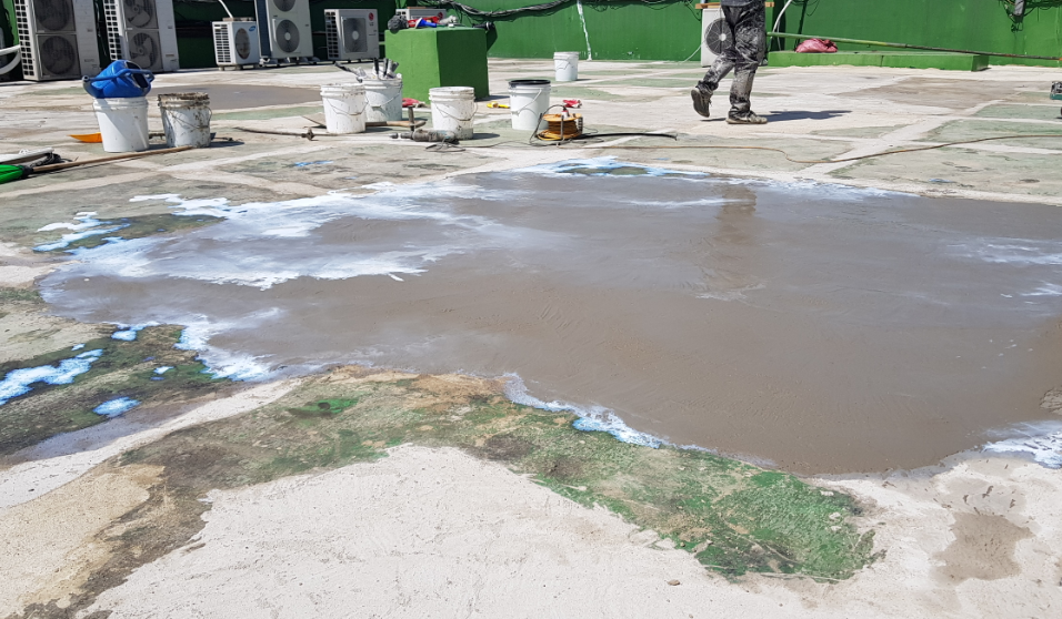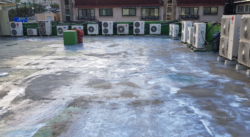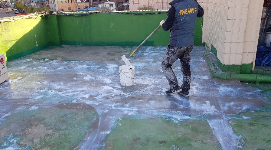 방수제를 바닥에 도포하여 옥상의 먼지와 각종