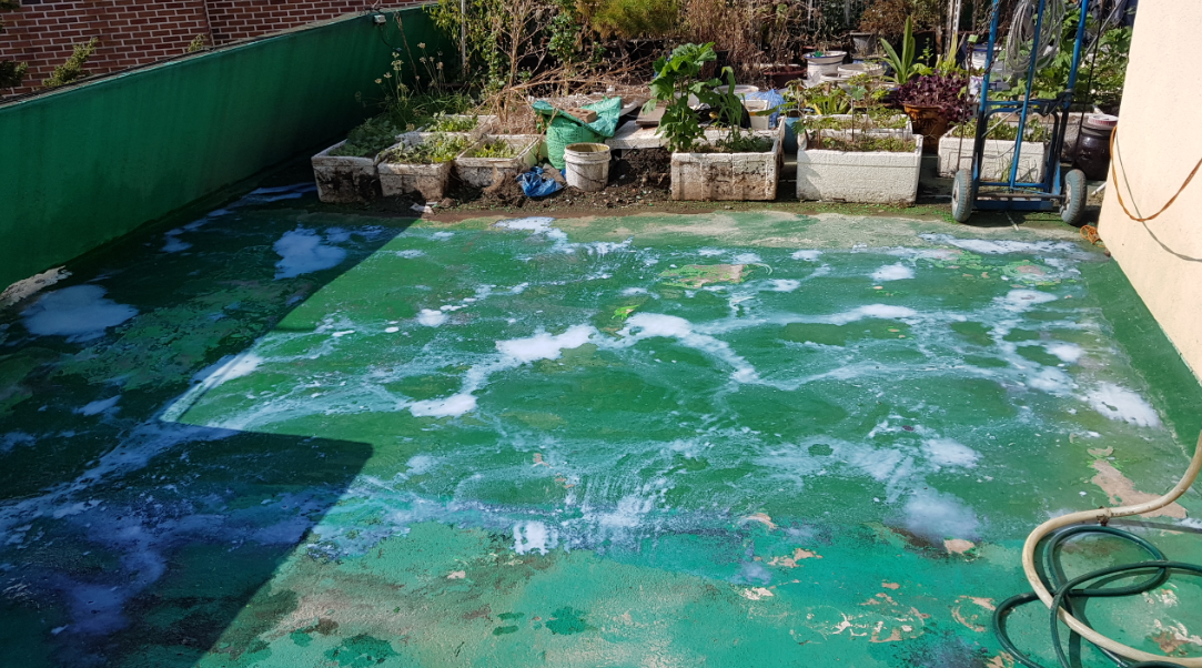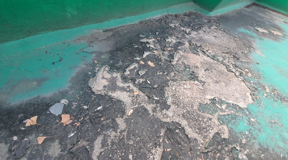 기존 우레탄으로 시공된 옥상에 심하게 하자가