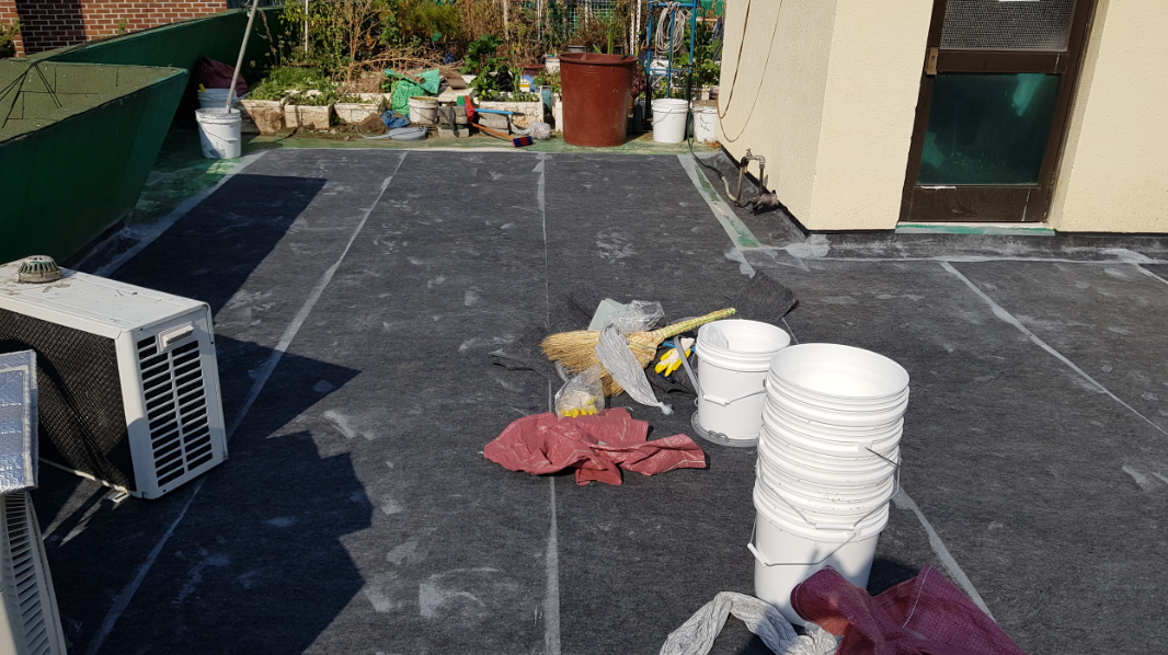 다음은 프라이머 작업입니다. 옥상의 먼지를 바닥에