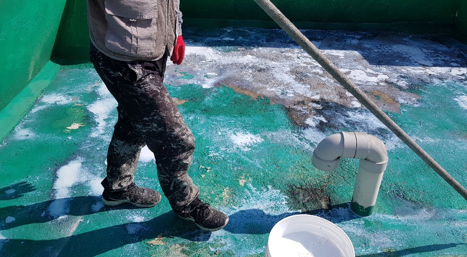 다음으로 방수액 도포 과정입니다. 돌가루를 원료로
