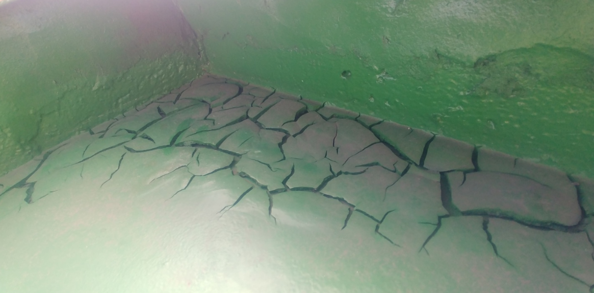 가뭄이 일어난 듯 크게 갈라져 하자가 발생한 것을