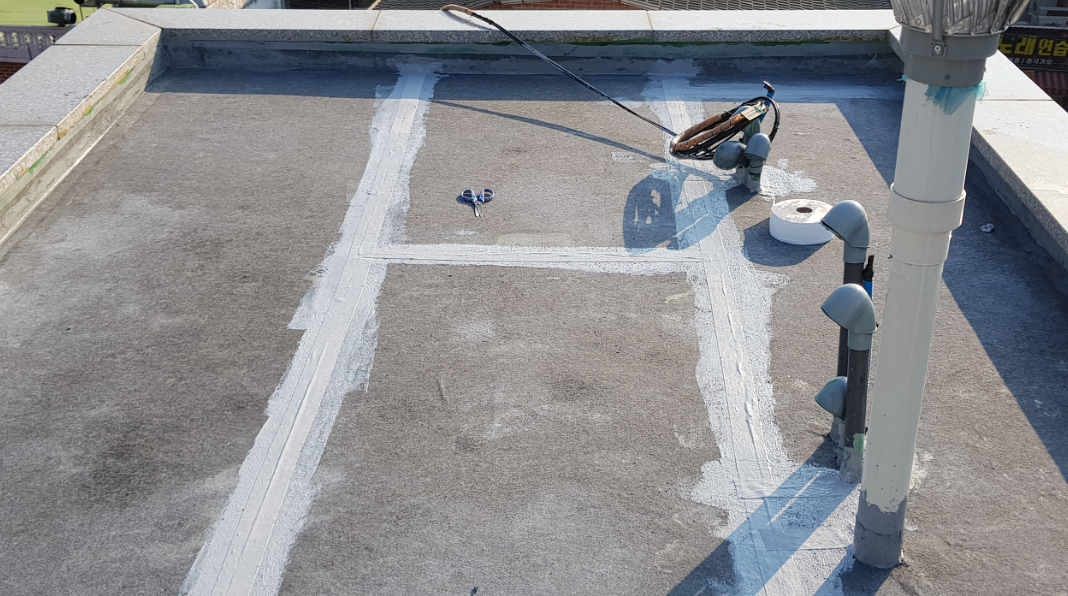 도포하는 작업입니다. 방수시트와 옥상 바닥을 서로
