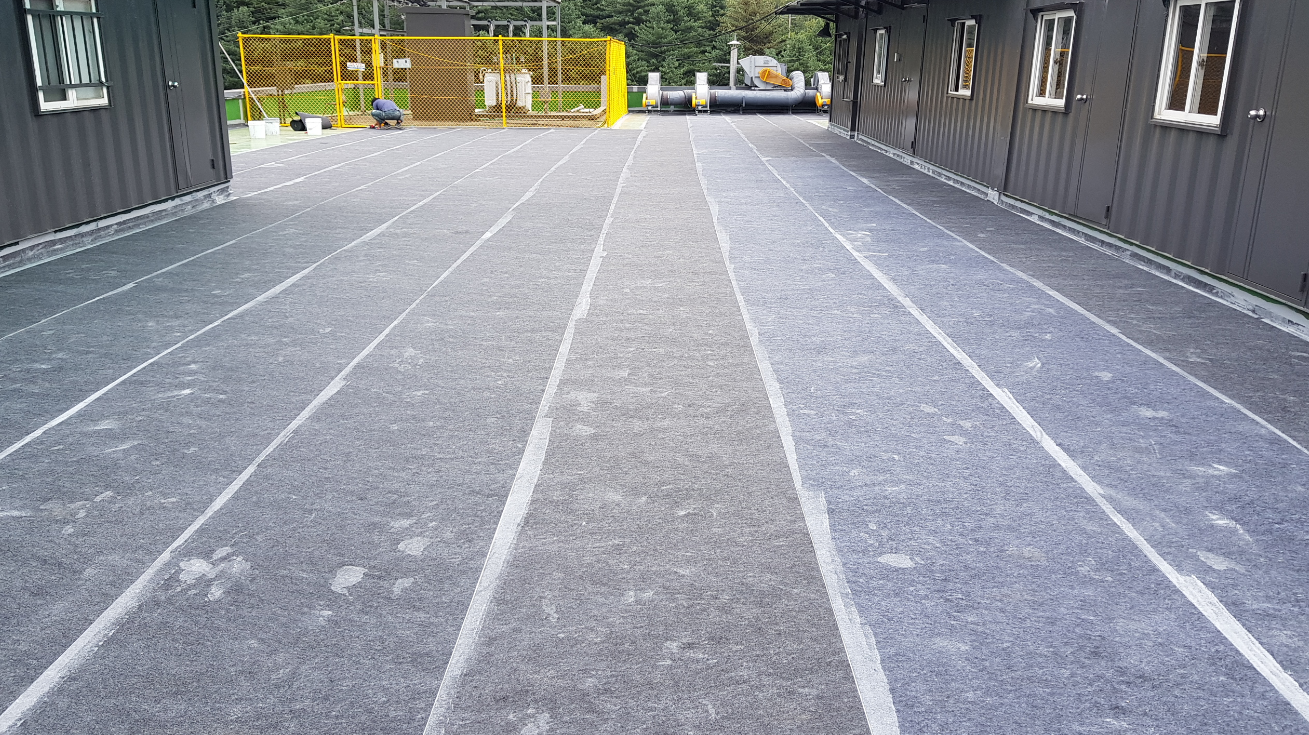 바닥에 덮은 방수시트와 옥상 바닥이 서로 떨어지지 않도록