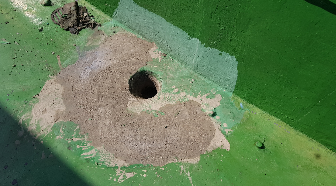 하자가 발생한 바닥을 뜯어낸 부분에 침투 방수제와