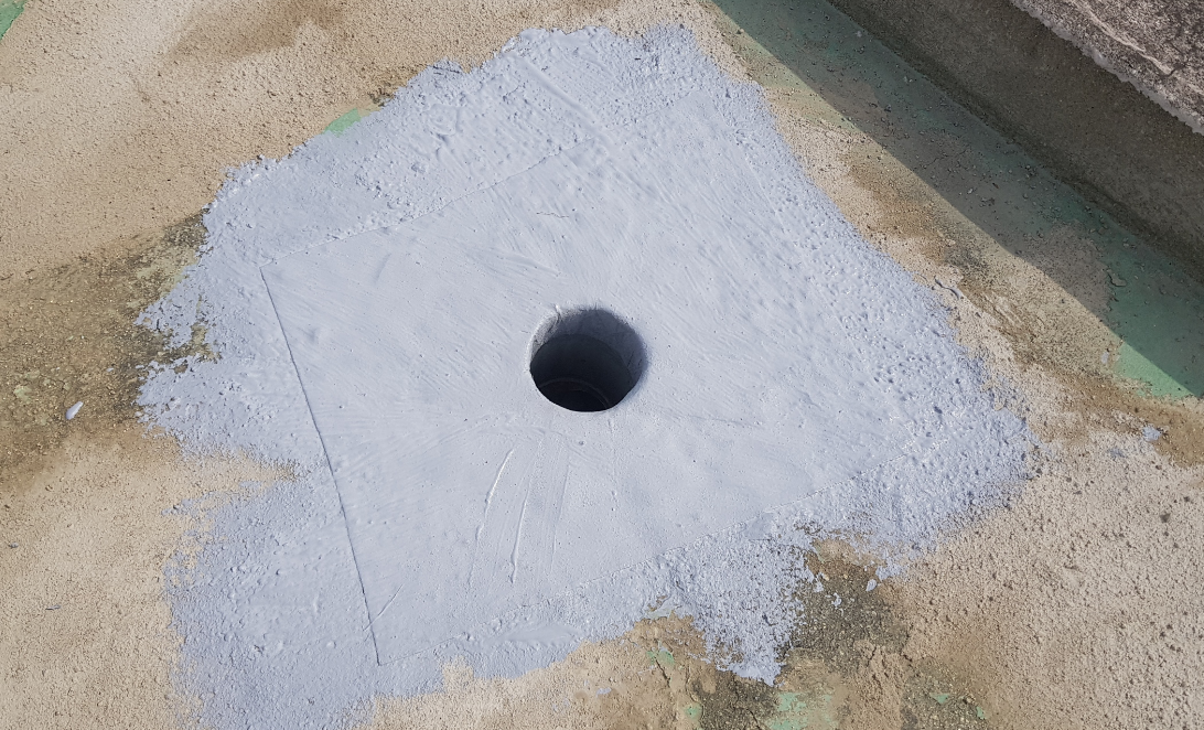 옥상에서 특히 누수에 취약한 우수관(배수관)과 조인트