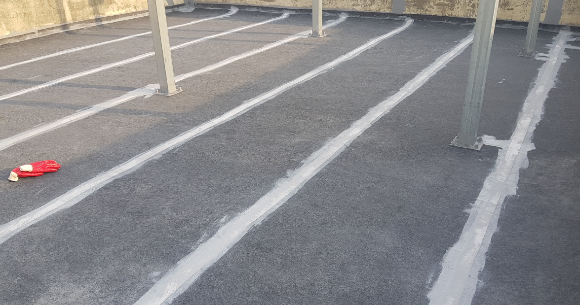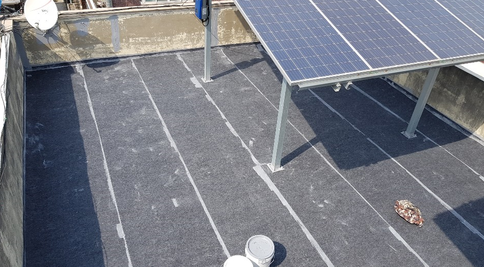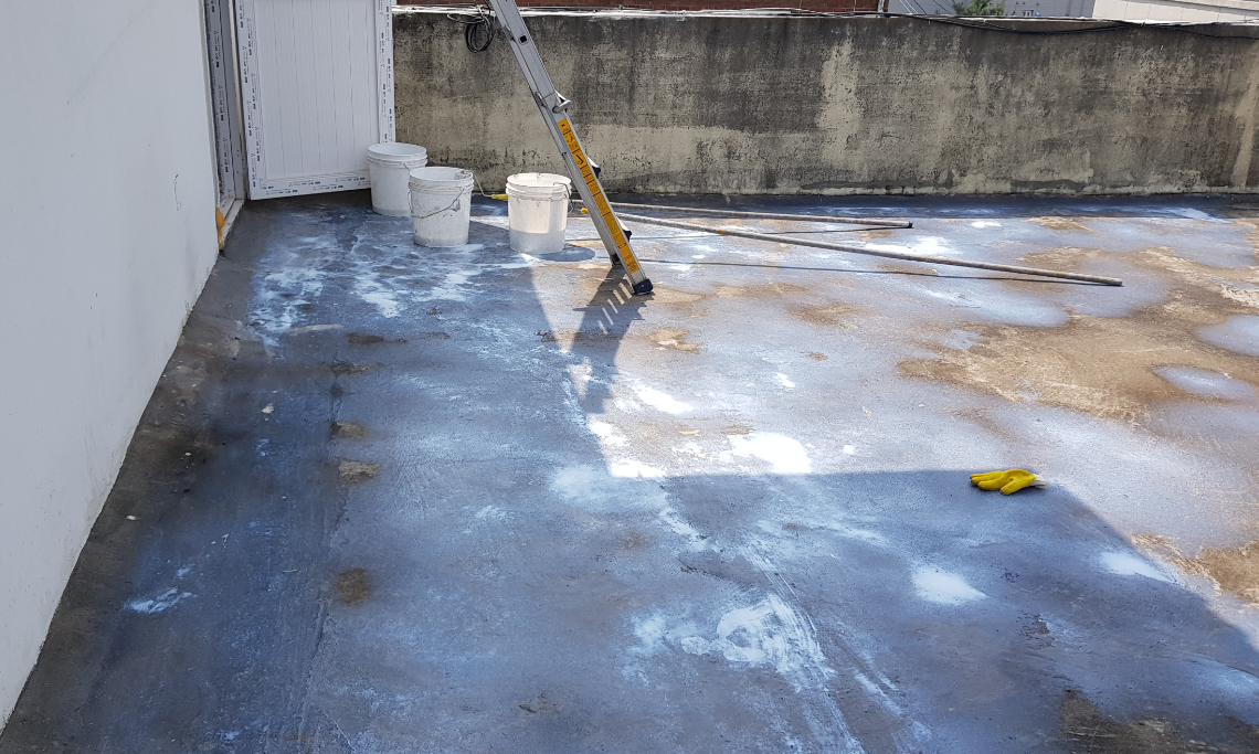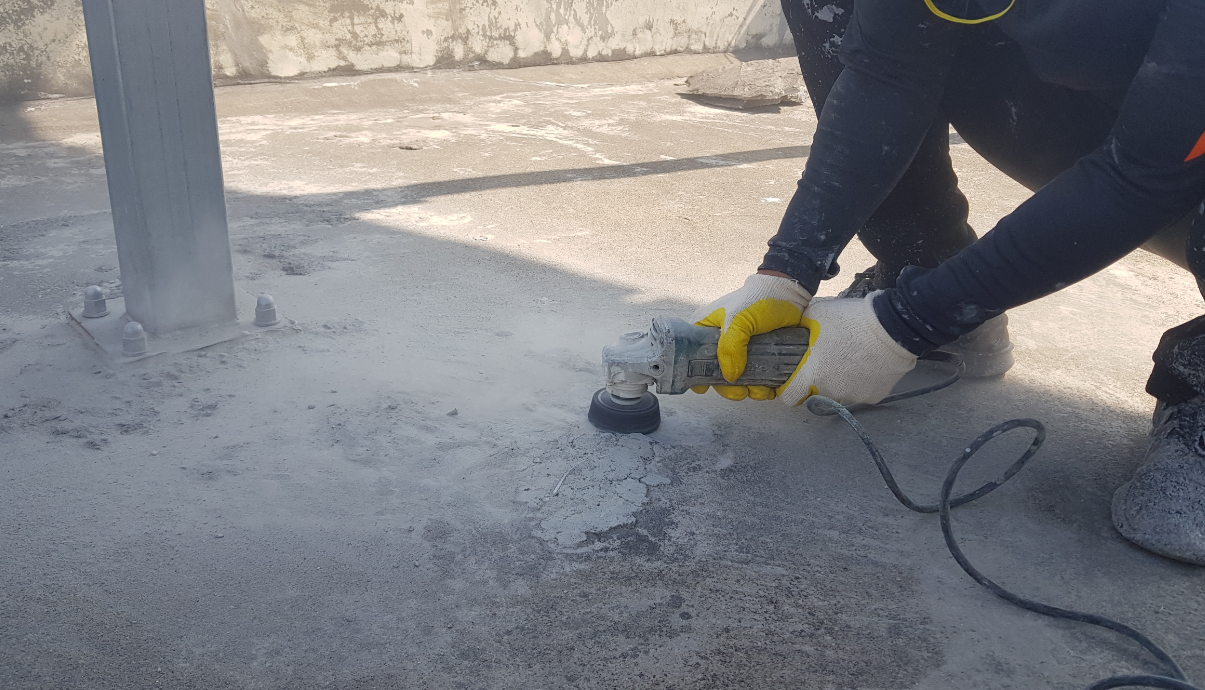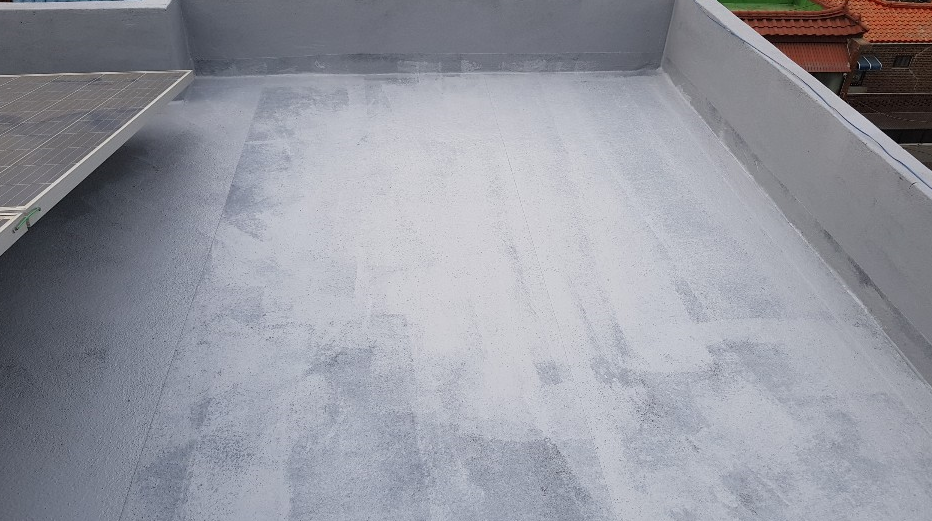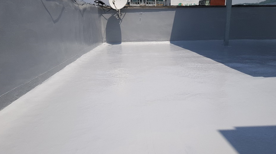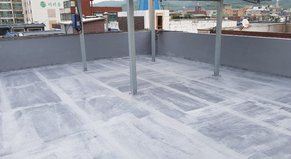 옥상의 먼지를 깨끗하게 제거하기 위해 프라이머 작업을