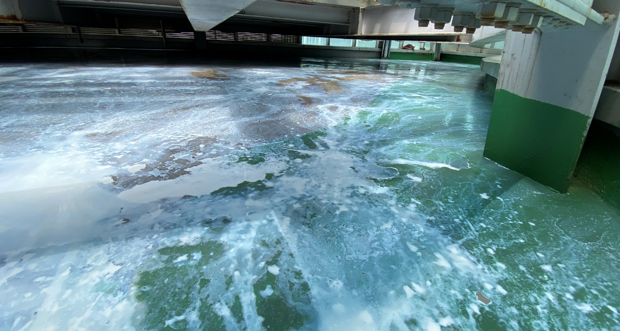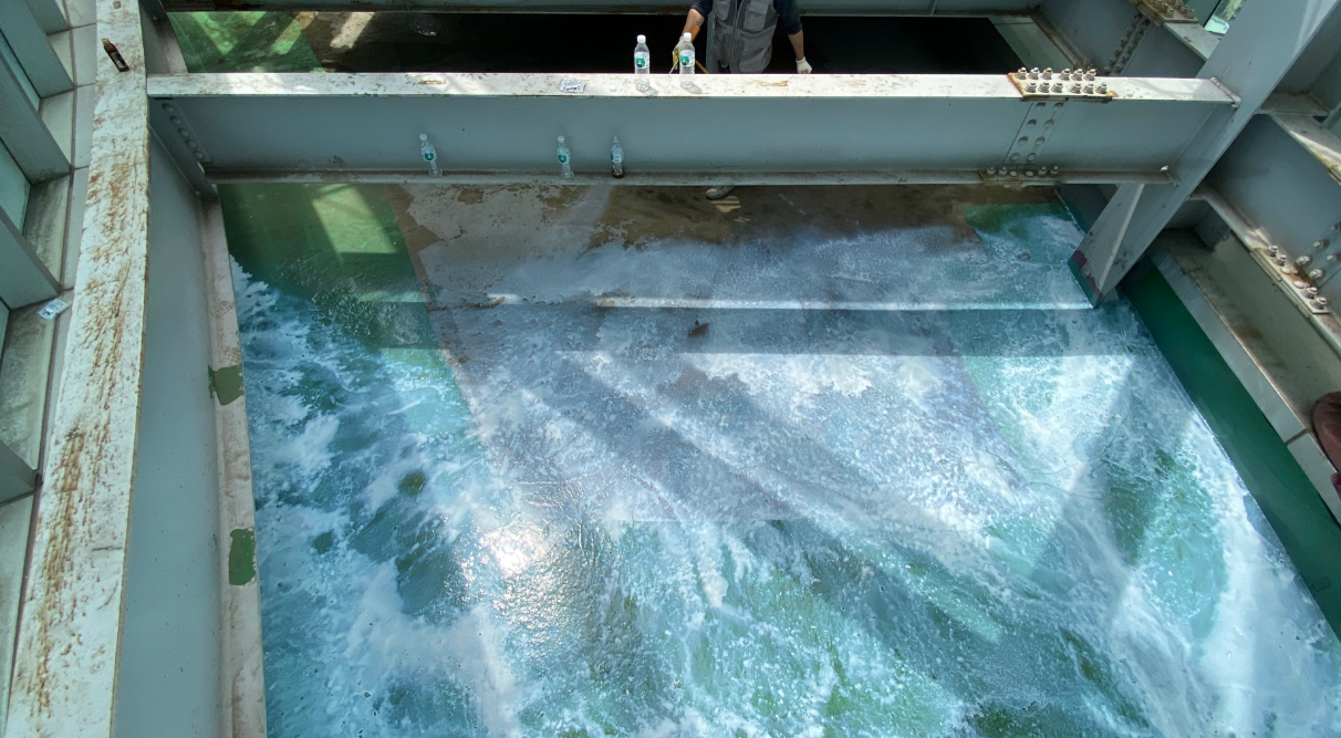 으로 방수시트가 바닥에서 떨어져 누수가 발생하