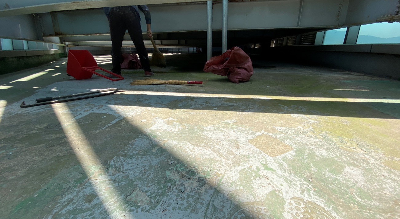 업으로 옥상의 먼지와 이물질을 바닥에 완전히 흡