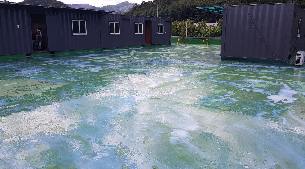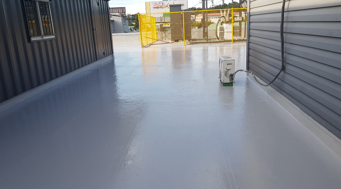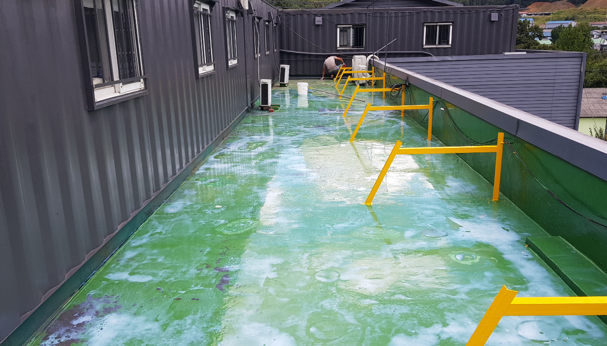 수액을 옥상 바닥 전체에 도포하는 과정으로 기본