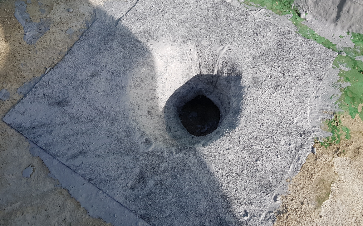 옥상 바닥이 패여 단차가 생긴 부분에는 미장 작업