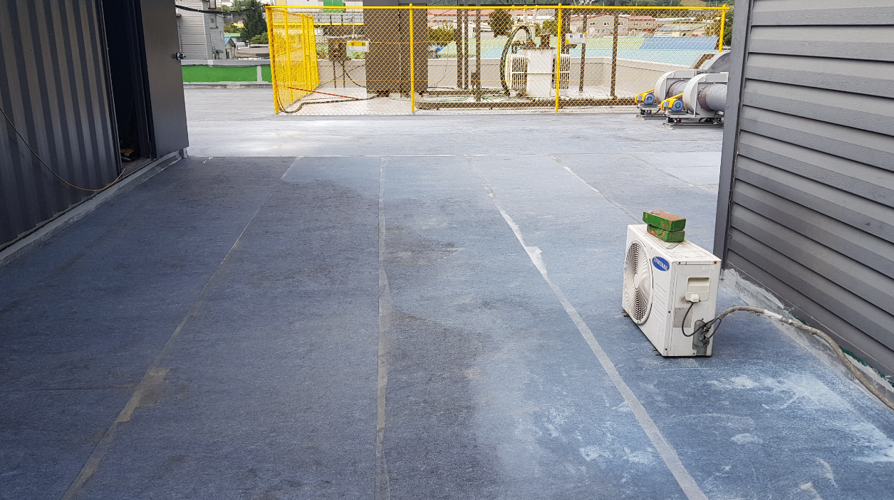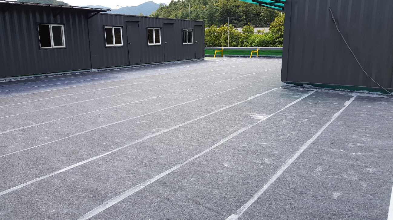 소재의 방수 시트를 옥상 전체에 부착하는 작업입