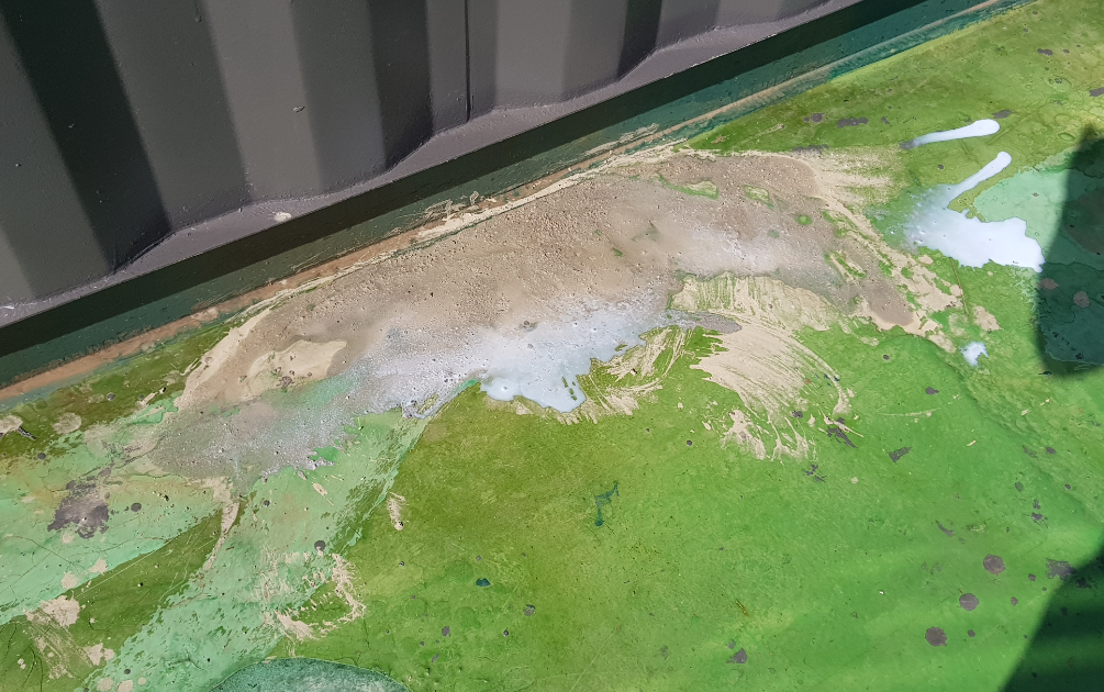 작업에 사용하는 방수액은 돌가루를 원료로 만든