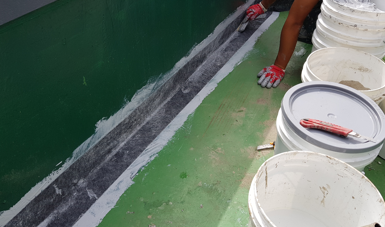함침 작업은 바닥에 부착한 방수 시트가 들뜨지 않