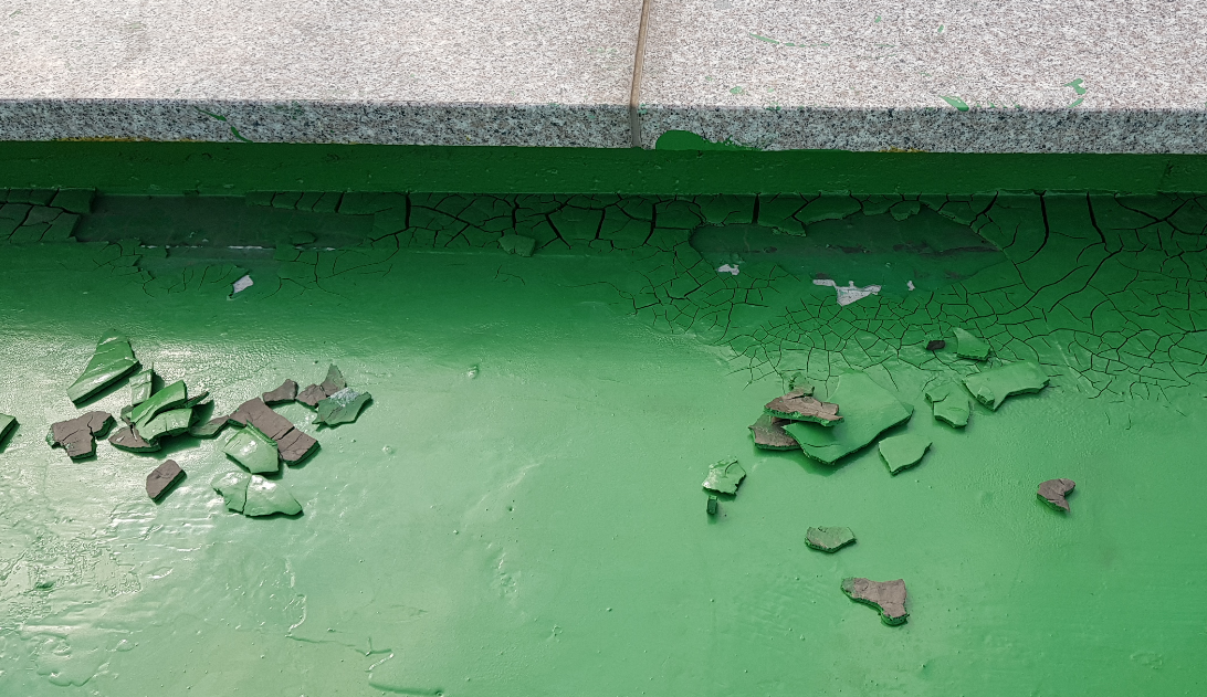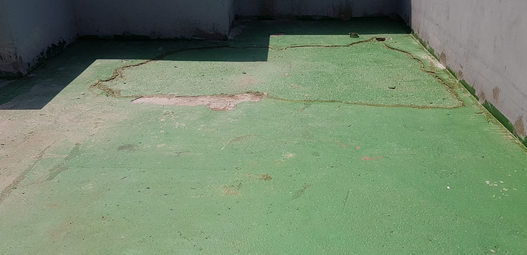 우레탄방수액으로 도막 방수를 한 옥상의 하자입
